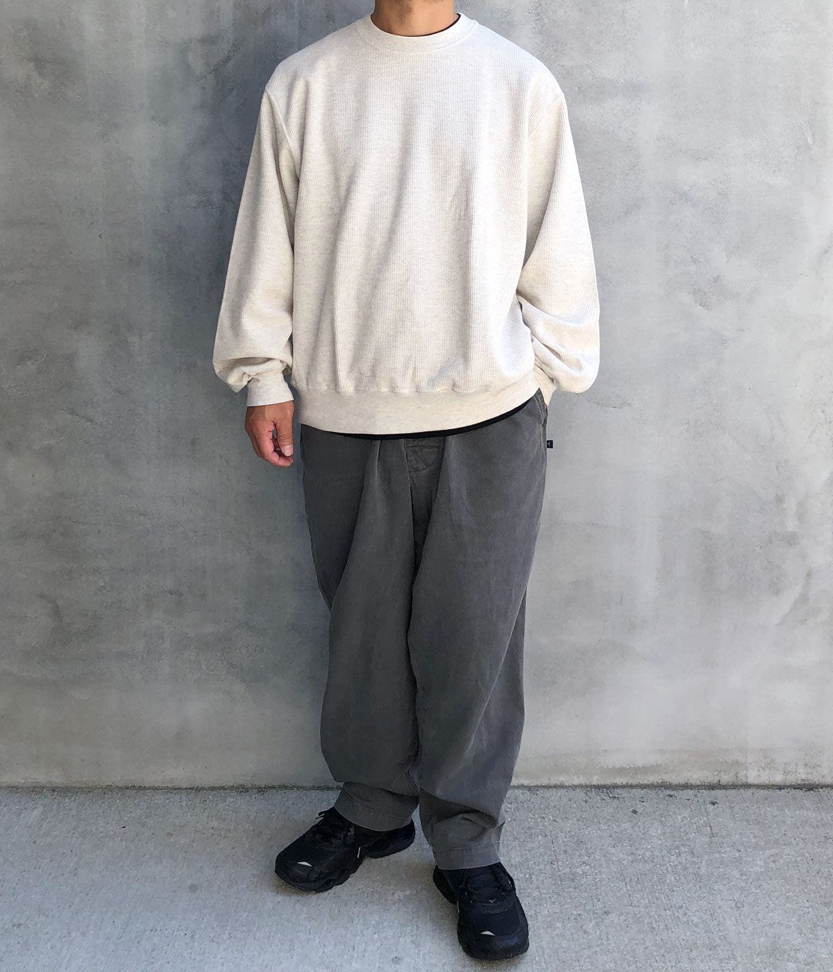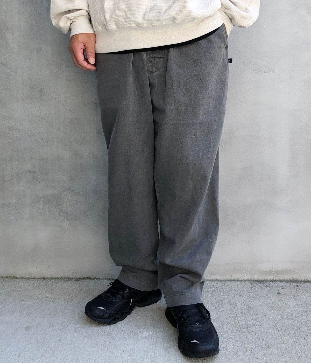 DESCENDANTから、SHORE TWILL BEACH TROUSERS PIGMENT DYEが入荷しました。緩やかなテーパードラインのゆったりとしたシルエットに、ウェストはドローコード入りの定番モデル。コットンツイル素材を使用した、通年着用できるユーティリティな1着。ピグメントダイ加工を施し着古した風合いを与えました。ゆったりとリラックスした気分で着用できるビーチパンツです。