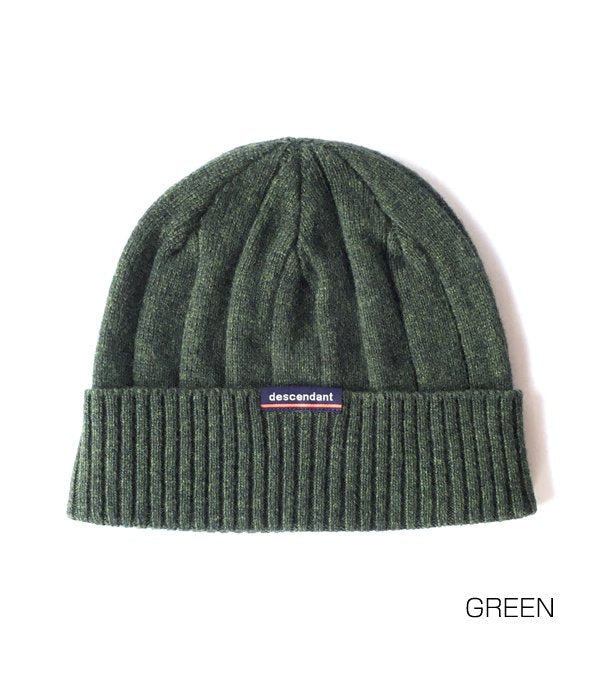DESCENDANTから、SHRIVEL BEANIEが入荷しました。シェットランドウールを使用したリブ編みビーニー。折り返しにお馴染みホライズンロゴをアクセントに。