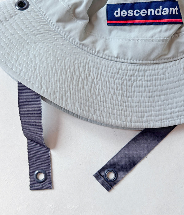DESCENDANTから、SIMMONS NYLON BUCKETが入荷しました。柔らかな風合いのナイロン製バケットハット。ハトメ付きのストラップが付属しパラコードを通しあご紐にも活用可能な自由度の高い作りの面白いハットです。