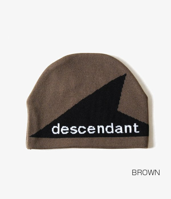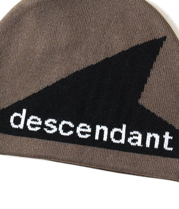 DESCENDANTのオルカロゴを全体に編み込んだしたジャカードニットのスキービーニー。頭にフィットした新しいスタイル。