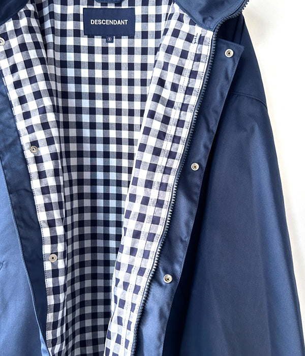 DESCENDANTから、SKIPPER TWILL JACKETが入荷しました。丸みを帯びたフォルムが特徴のスタンドカラー型ドリズラージャケット。フライフロント仕立てに、CROSS PADDLEロゴを左胸に刺繍でワンポイント。裏地のギンガムチェックが春らしい1着。