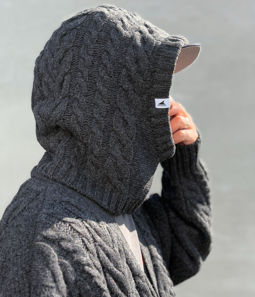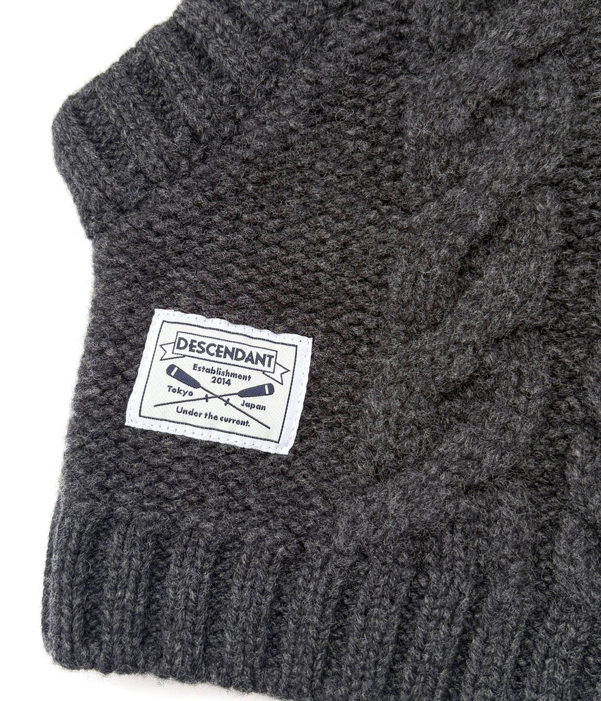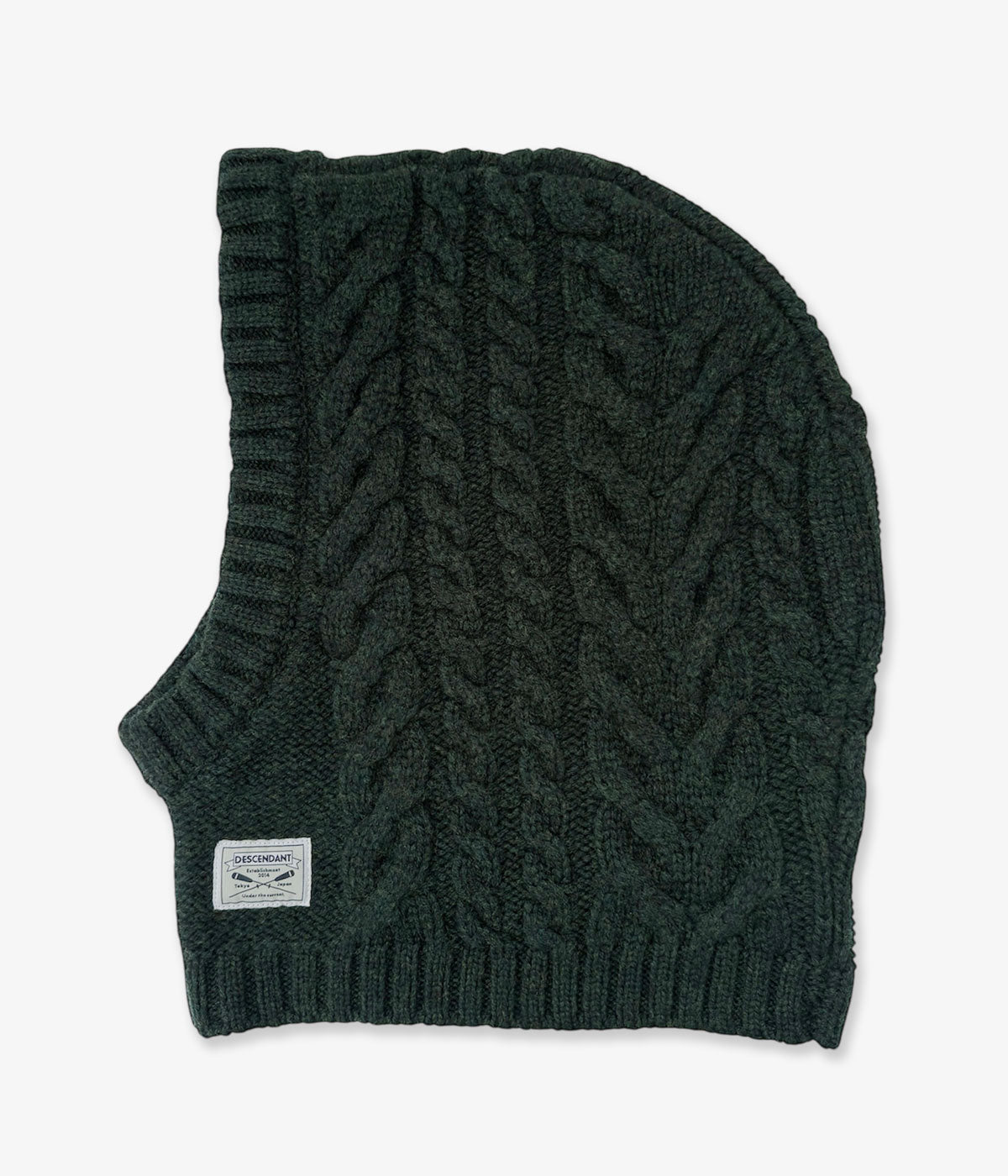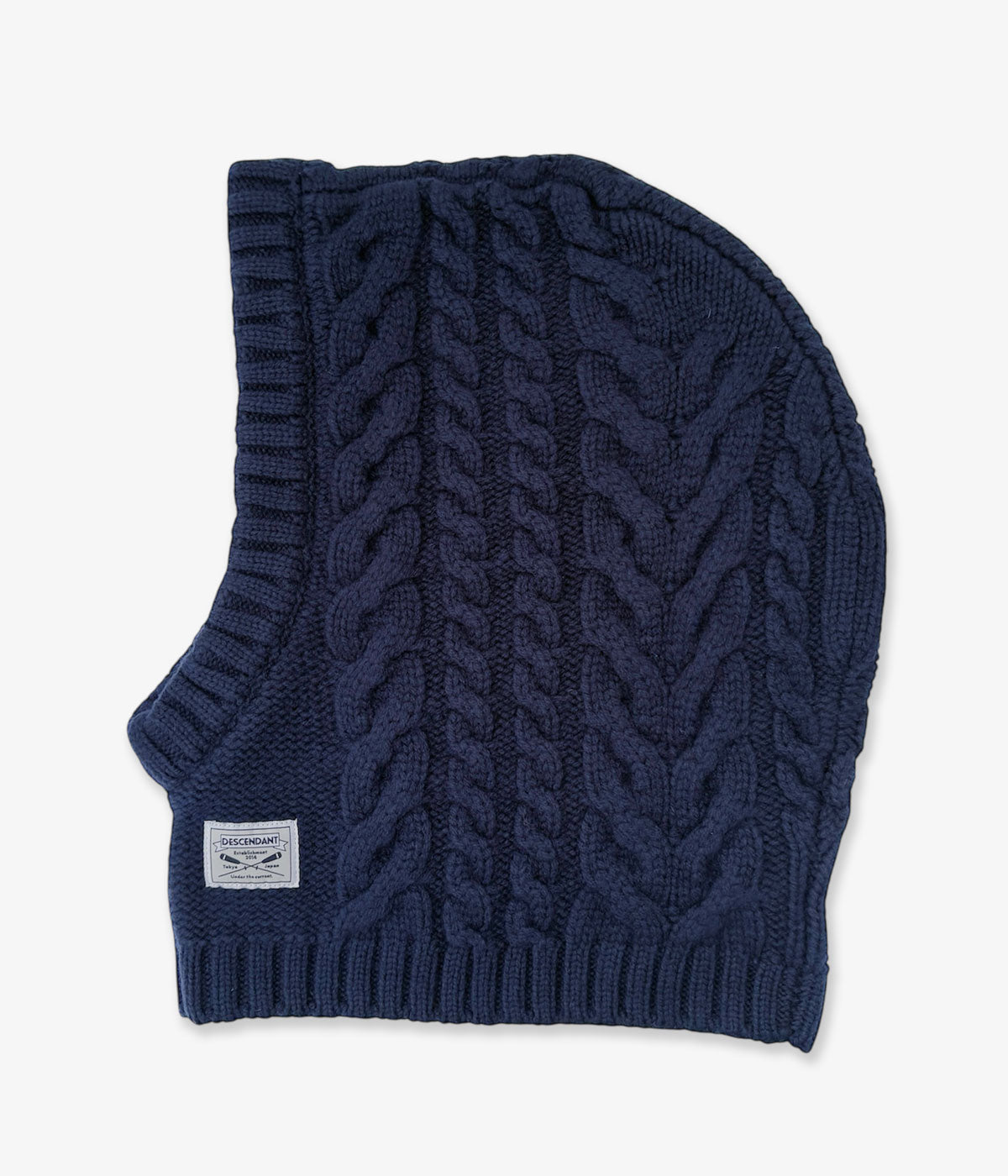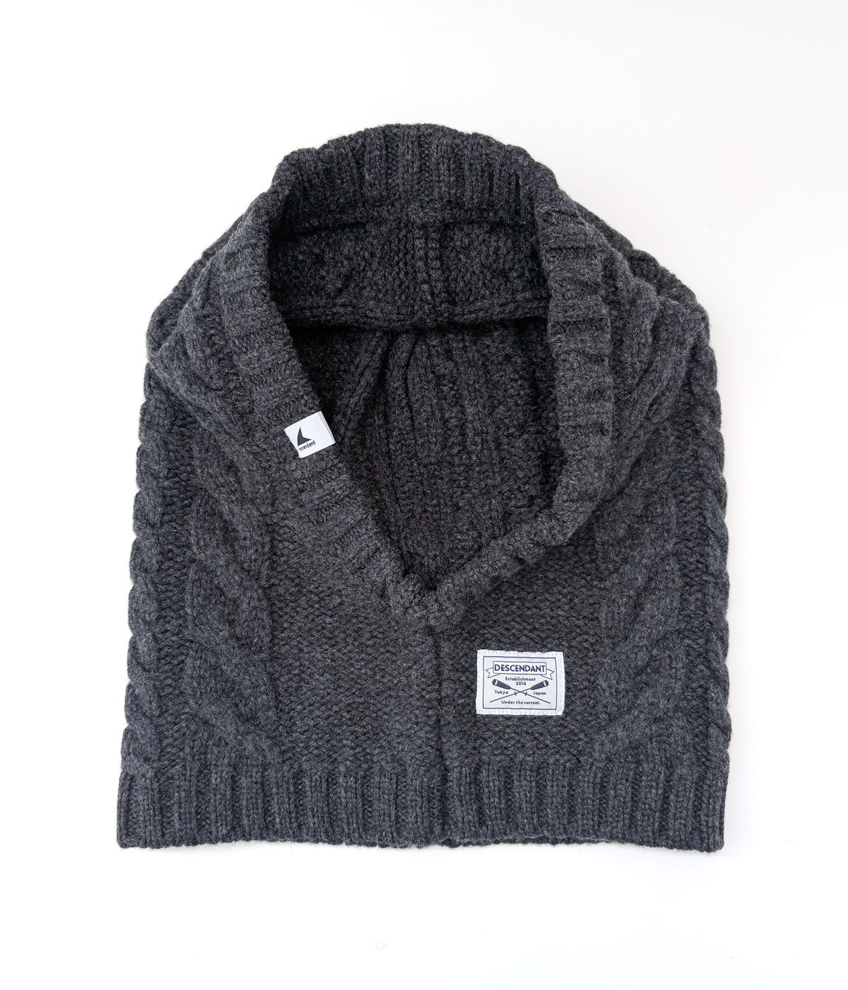 DESCENDANTから、SPEAR HOOD WORMERが入荷しました。国際基準に則った高品質なメリノウール素材を使用したニットフードウォーマー。フードは頭をすっぽり覆い、楕円状の窓から顔を出す作りです。縄編みの立体的な編み模様で仕立てたアランニットが暖かい印象を与えてくれます。