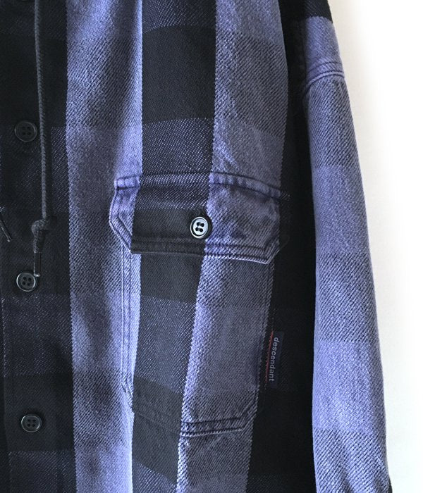 DESCENDANTから、SPICOLI HOODED LS SHIRTが入荷しました。毎シーズンディティールを変えリリースされるDCDTの定番SPICOLI、ブロックチェックにオーバーダイ加工を施したNEW MODEL。フード部表面はボディと同じチェック生地を使用し、裏面は無地同系色で切り替えました。左右のフラップポケットとクジラの刺繍がベーシックの証。