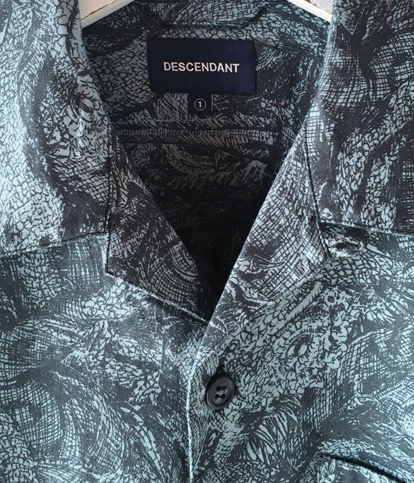 DESCENDANTから、SQUAMA TEXTILE SS SHIRTが入荷しました。コットンサテン生地に、海イグアナをモチーフにした総柄プリントを施したオリジナルテキスタイルシャツ。身幅広めのボックスシルエットにオープンカラーの春夏シーズンの風物詩的アイテム。