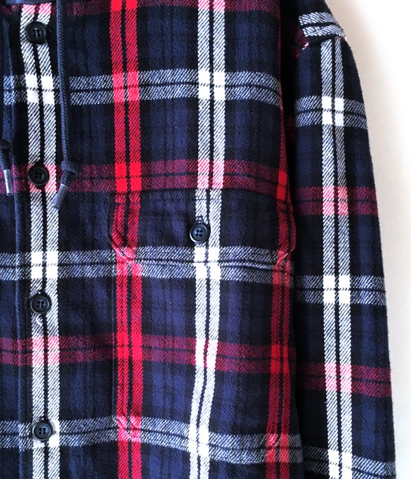 DESCENDANTから、STONER HOODED LS SHIRTが入荷しました。人気のチェックフーデッドシャツの新作は、RED x NAVYによる暖かみのあるスコットランドチェックで。厚みのあるフランネル素材で秋が深まるにつれ手放せない一着に。左右にフラップ付きのバストポケットを配置。