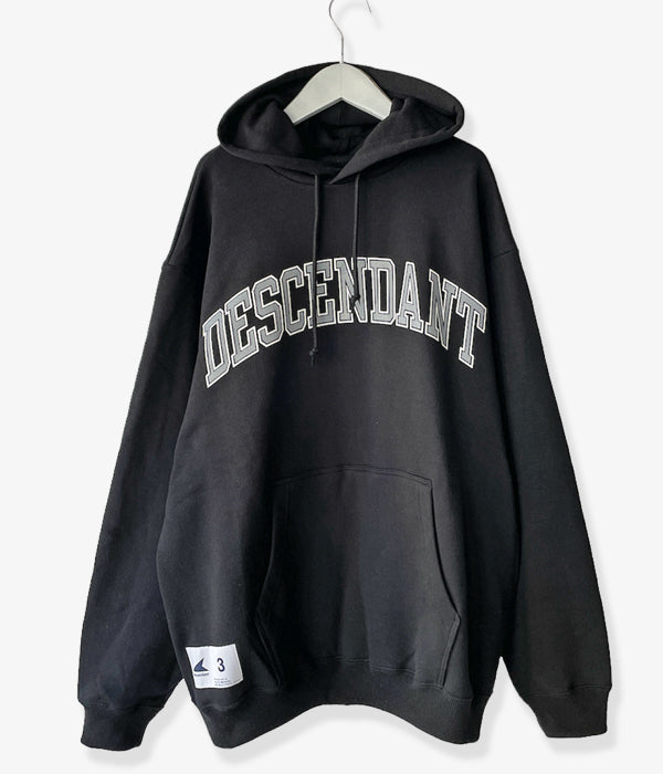 DESCENDANTから、TEAM HOODYが入荷しました。コットンポリ混紡素材(裏毛テリー)を使用したスウェットフーディー。ゆったりとした身幅に仕立て、フロントにアーチ状でデザインされたTEAMロゴを配置し、裾にはサイズ表記パッチタグをデザインしました。