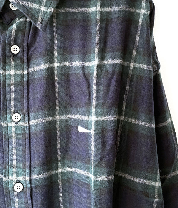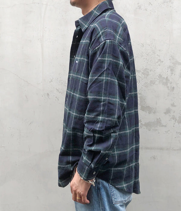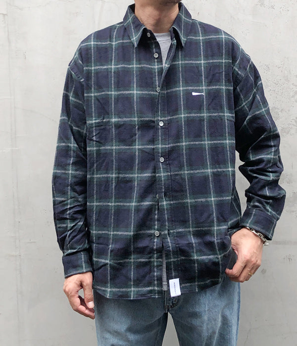 DESCENDANTから、TEDDY PLAID LS SHIRTが入荷しました。コットン製のフランネル生地にシャギー加工を与えた、規則正しい格子状のグリッドパターン柄シャツ。身幅の広いシルエットに、左胸のクジラの刺繍がワンポイント。
