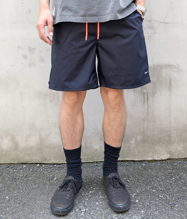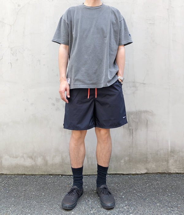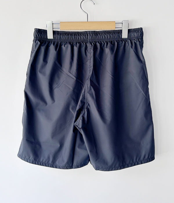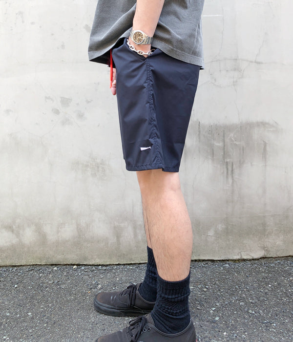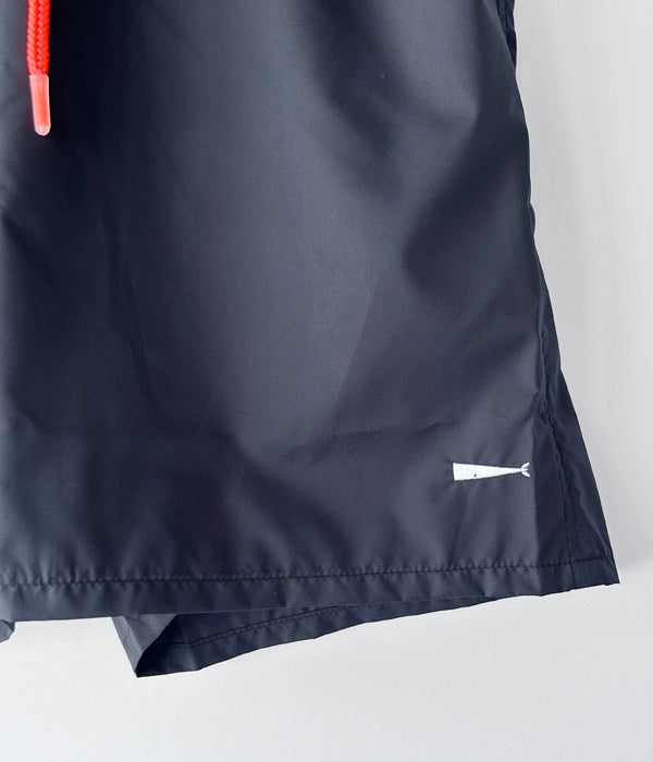 DESCENDANTから、TIDE SHORTSが入荷しました。高密度のナイロン素材を使用し、インナーメッシュを備えたスイムショーツ。両サイドシーム沿いのポケット、クジラの刺繍をワンポイントデザインしたシンプルな飾り付けで、水陸両用出来る汎用性の高い1着です。ウェストに通したオレンジのスピンドルがポイント。
