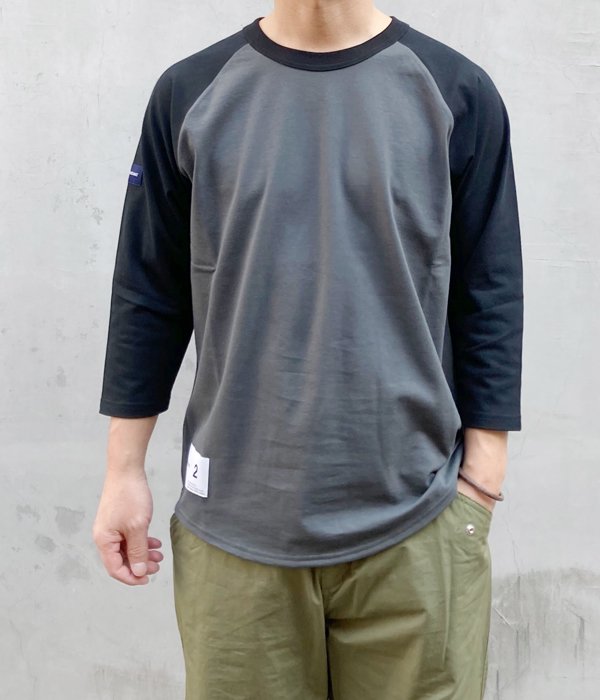 DESCENDANTから、TWO BIT B.B. SSが入荷しました。ラグランスリーブのツートーンカラー、ラウンドしたヘムラインによるベースボールジャージー。右袖のBOX LOGO、裾のサイズ表記織りネームがアクセントに。