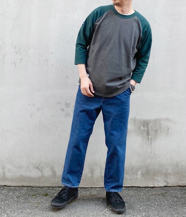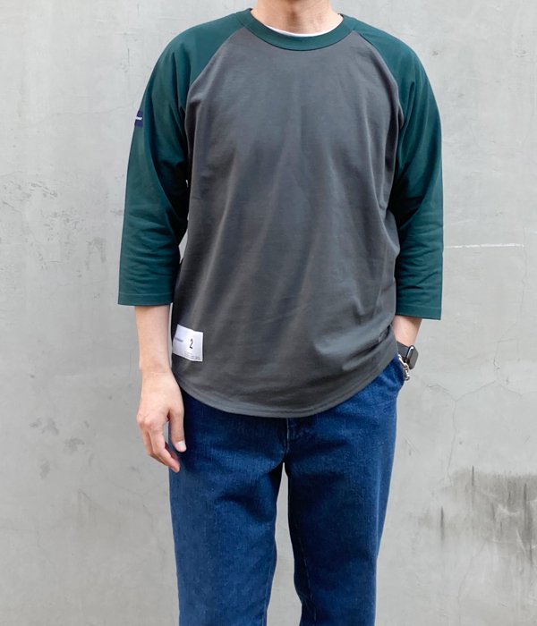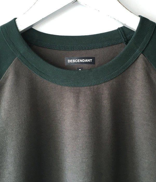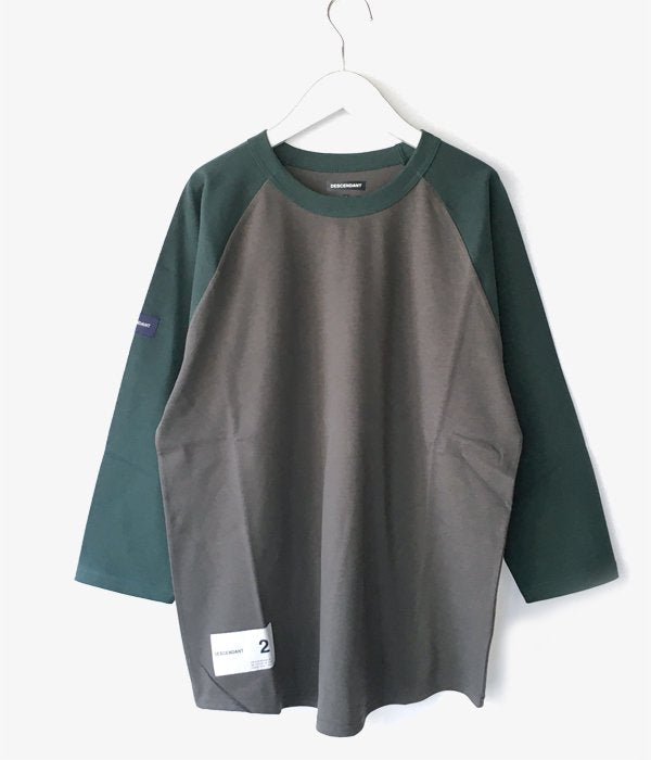 DESCENDANTから、TWO BIT B.B. SSが入荷しました。ラグランスリーブのツートーンカラー、ラウンドしたヘムラインによるベースボールジャージー。右袖のBOX LOGO、裾のサイズ表記織りネームがアクセントに。
