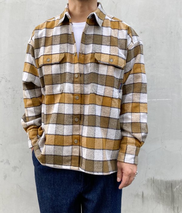 DESCENDANTから、VANING CHECK LS SHIRTが入荷しました。身幅のたっぷりとしたボックスシルエットのコットン/ポリ素材のフランネルシャツ。先染め加工による味わいのある風合いのブロックチェック柄。フラップ付きポケットを左右に配置したDCDTの定番チェックシャツ。