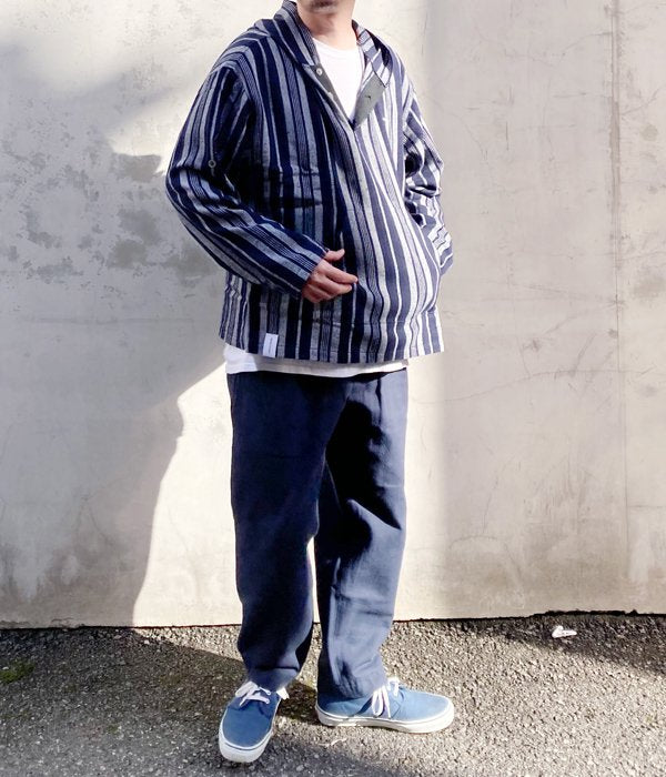 DESCENDANTから、WRINKLE TUCK TROUSERSが入荷しました。厚手のツイルコットンを使用したタック入りパンツ。ドローコード内蔵でベルト要らずですが、ベルトループはしっかりと完備。腿周りはゆったりと、裾へ向けてテーパードがきいたシルエット。