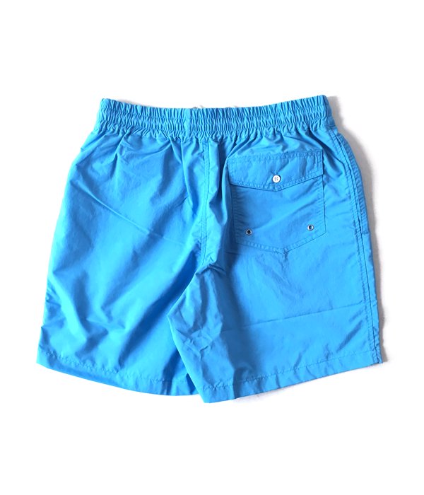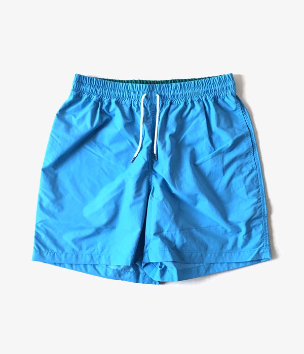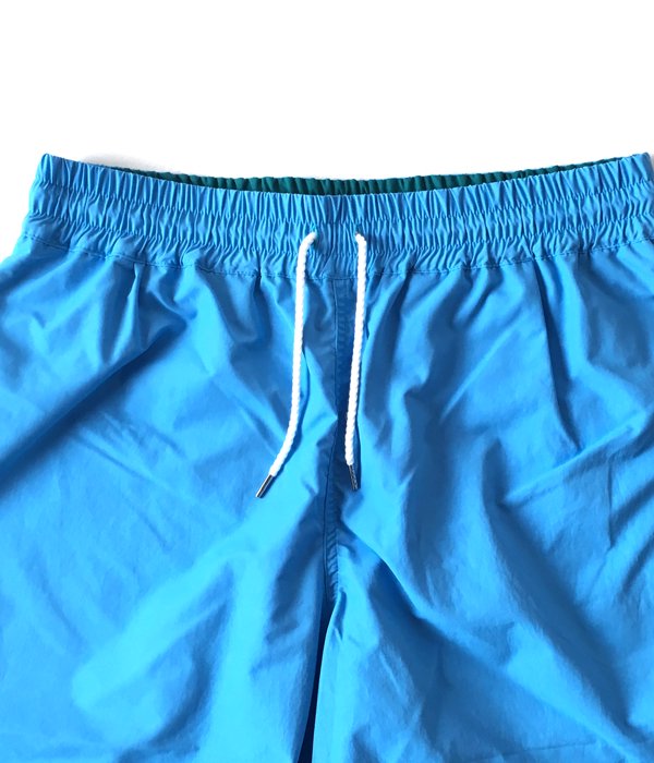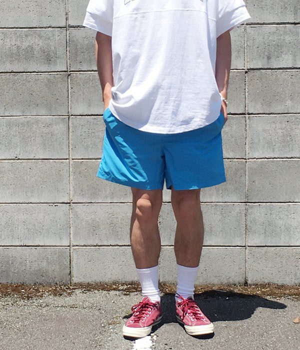 DIGAWEL的な解釈によるバギーショーツ。ウェストはゴム入りのドローストリング仕立て。ポケット裏地にメッシュ素材を用いています。ウェスト部分の裏地を切り替え2-TONEカラーに仕上げました。バックのフラップポケットがアクセントに。