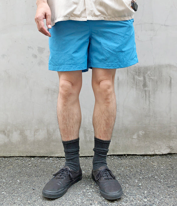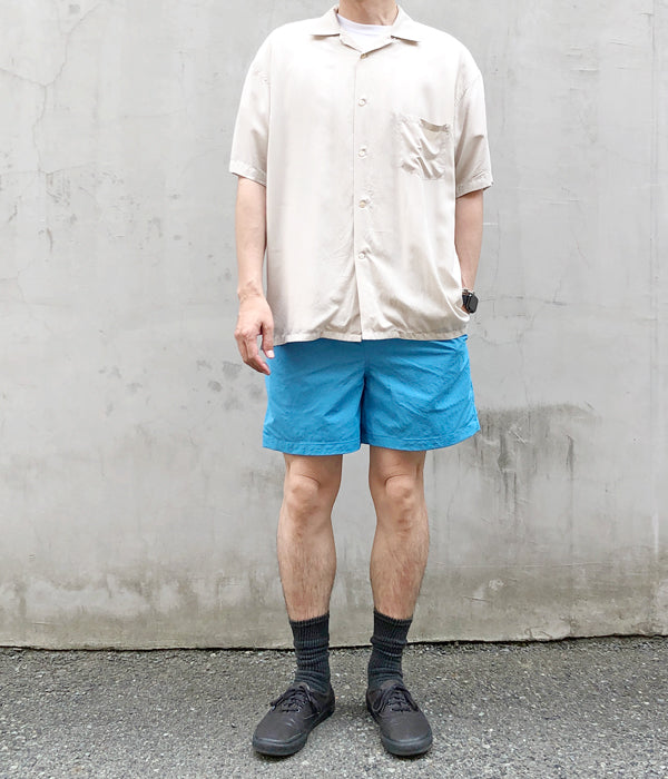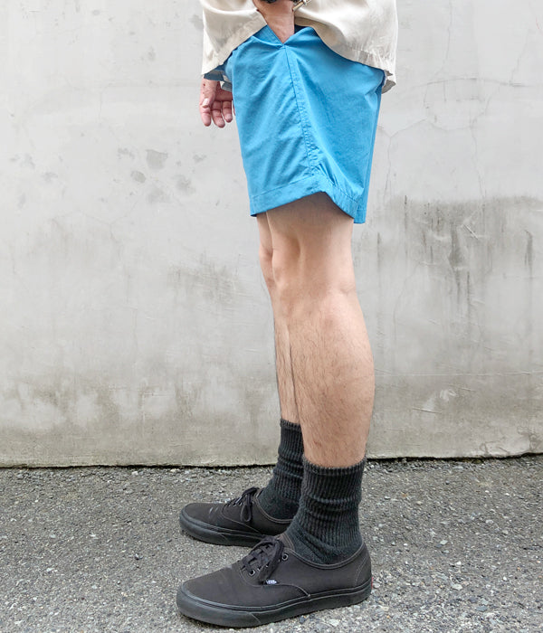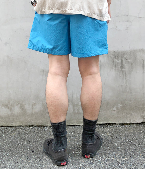 DIGAWELから、BAGGY SHORTSが入荷しました。昨年のリリース時に即完売を果たした、DIGAWEL的な解釈によるバギーショーツの22SSバージョンが急きょ入荷しました。ウェストはゴム入りのドローストリング仕立て。サイドポケット裏地にメッシュ素材を用いています。ウェスト部分の裏地を切り替え2-TONEカラーに仕上げました。バックのフラップポケットがアクセントに。