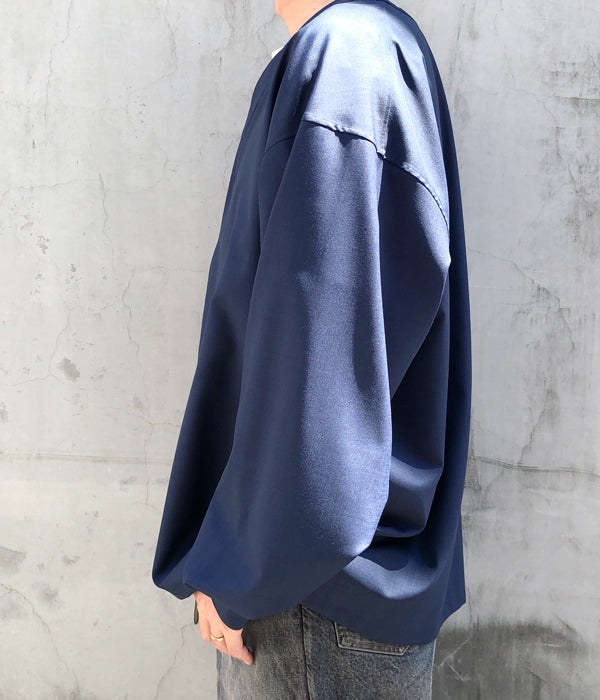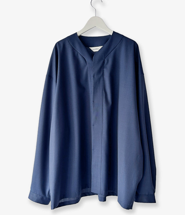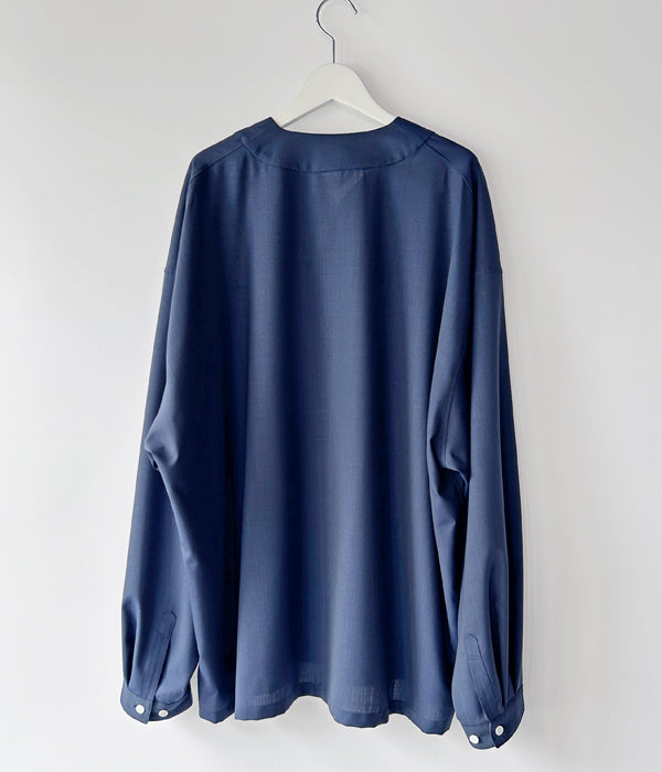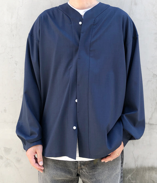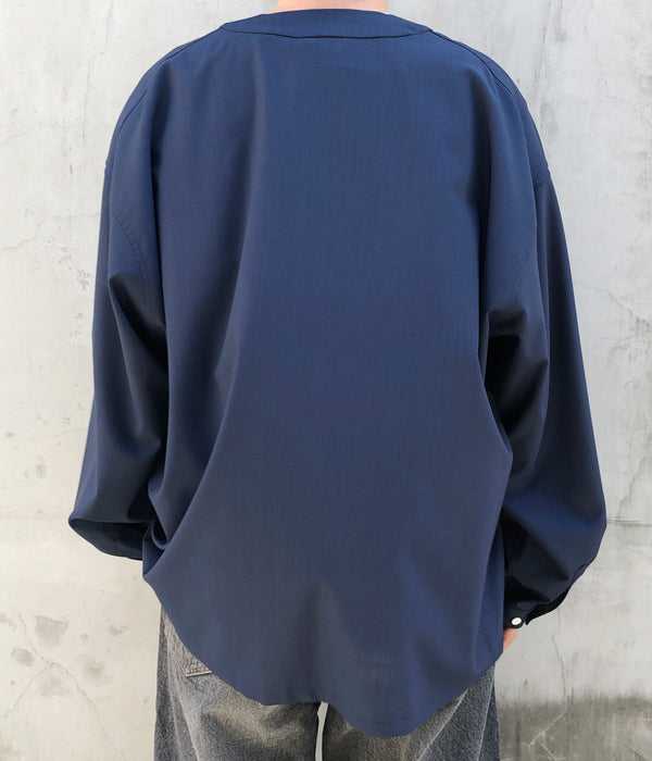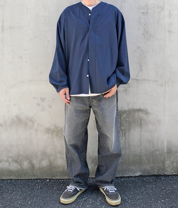 DIGAWELから、BASEBALL SHIRTが入荷しました。浅めのVネックに、比翼仕立てのでざいんによるベースボールシャツディティールの1着。T/W素材を使用したシワになりにくいドレープ感のある仕立て。袖口にもタックを備えたゆったりとしたサイジング。