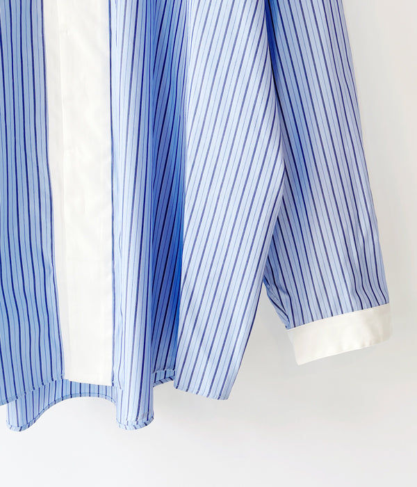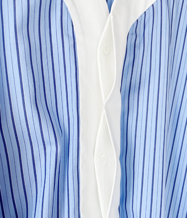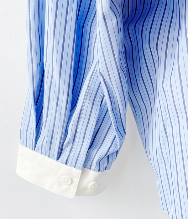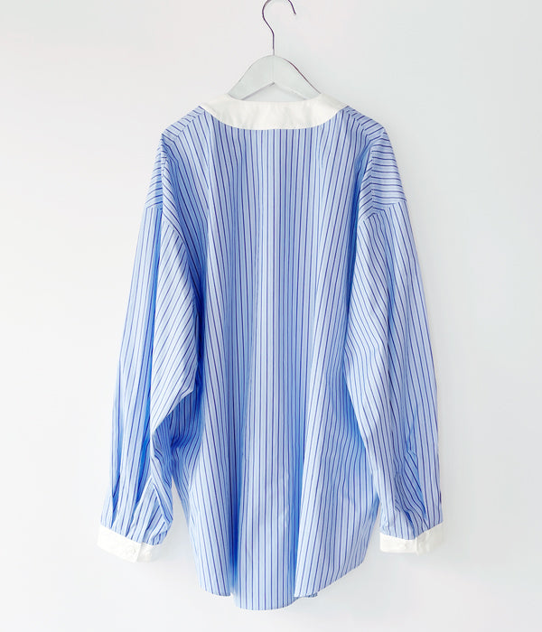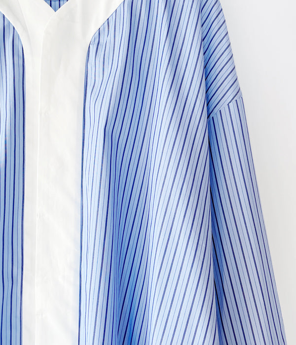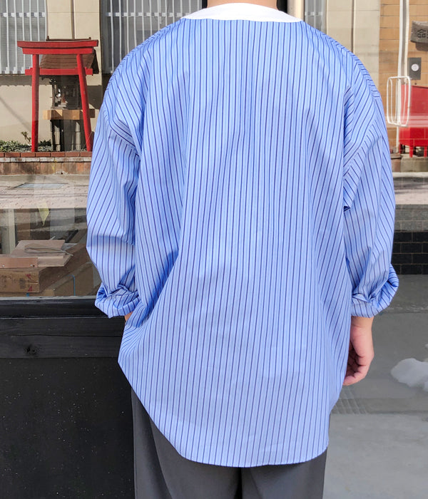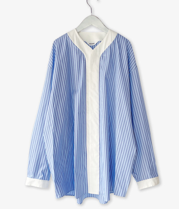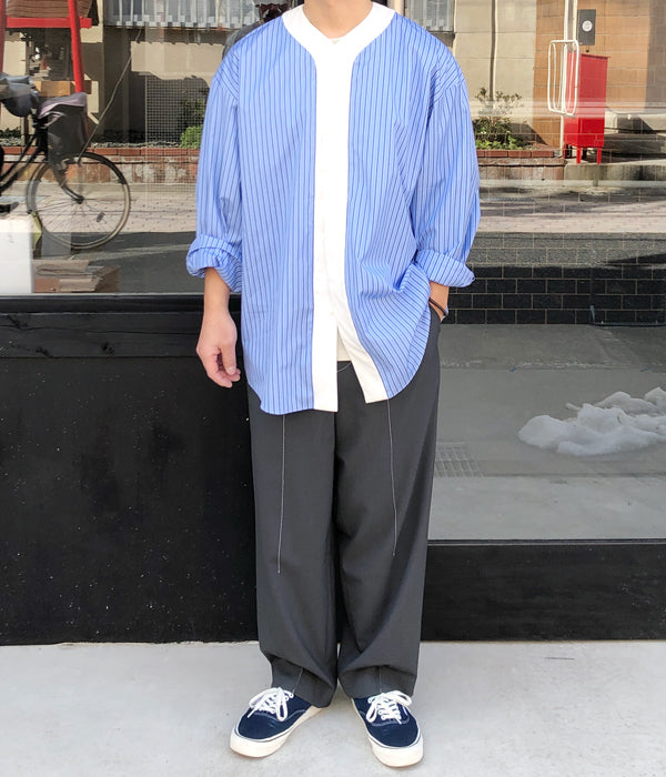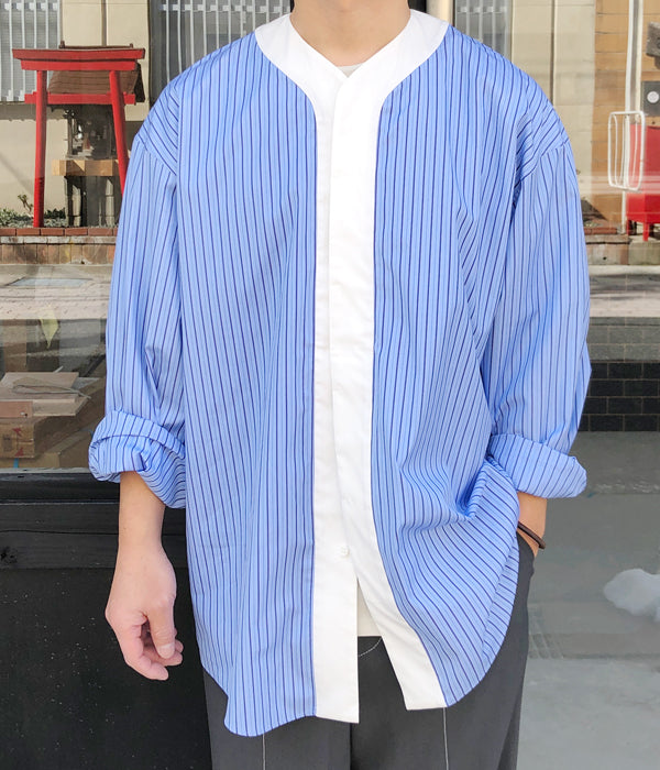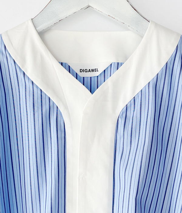 DIGAWELから、BASEBALL SHIRT (STRIPE)が入荷しました。高品質を誇るトルコの生地メーカー"SOKTAS"のシャツ生地を使用し、前開き比翼ボタンによるベースボールシャツを仕立てました。爽やかなストライプ柄に、前立てから首回りをバイカラーで切り替えたデザイン。カフス付きのシャツデザイン。