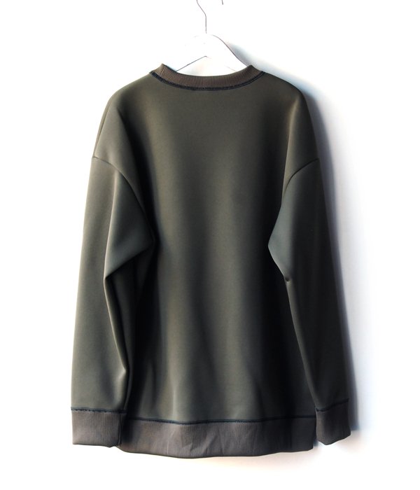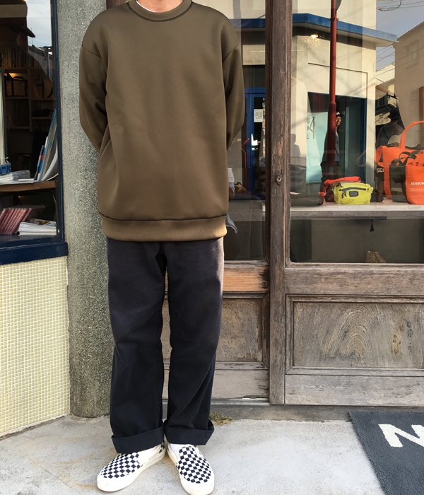 異なる素材を貼り付けたBONDING加工を施したCN L/S。跳ね返るような独特な質感が特徴的な一着。光沢のある生地感が上品な印象を与えます。