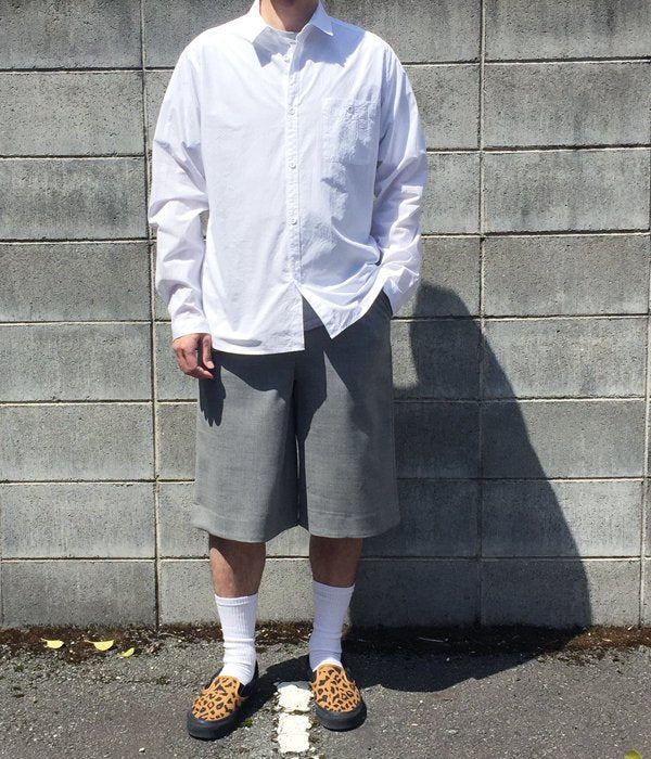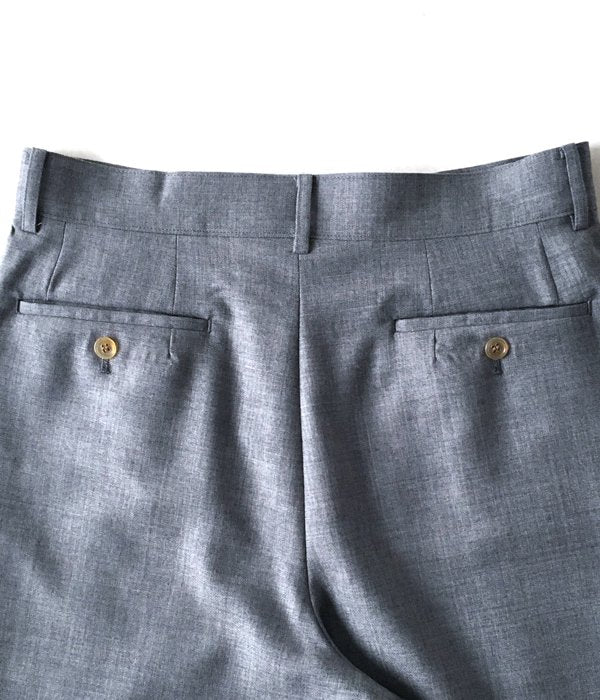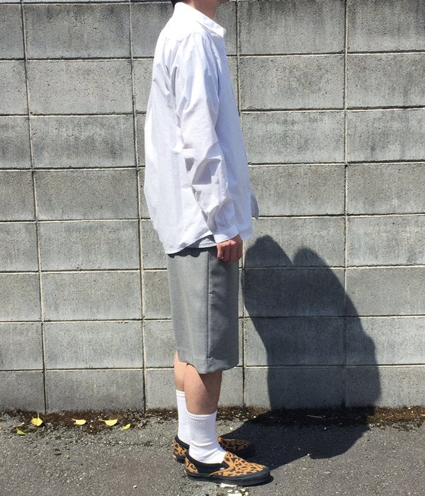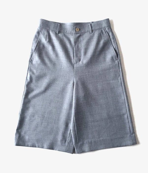 膝が隠れる丈感が特徴のカプリパンツは、薄手のウールを用いて上品な表情に仕上げました。モードとストリートが同居したような独特のシルエットが面白い一着。