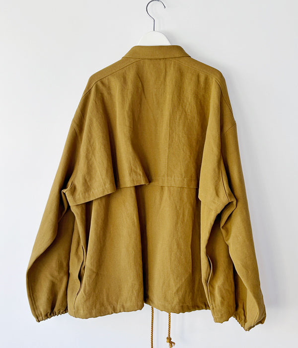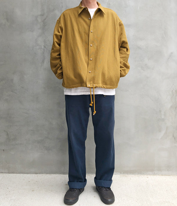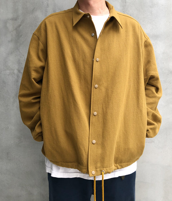 DIGAWELから、COACH L/S SHIRT JACKETが入荷しました。荒い打込みで洗いざらしのようなシワ、ムラ感のあるコットンベースのミックス素材を使用したコーチジャケットベースのシャツJKT。袖口はゴム入りシャーリング仕立てに、背面にはインナーをメッシュに切り替えたベンチレーション機能を備えたデザイン。サイドポケット付き。