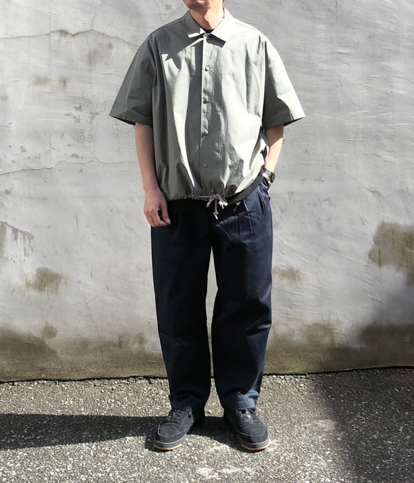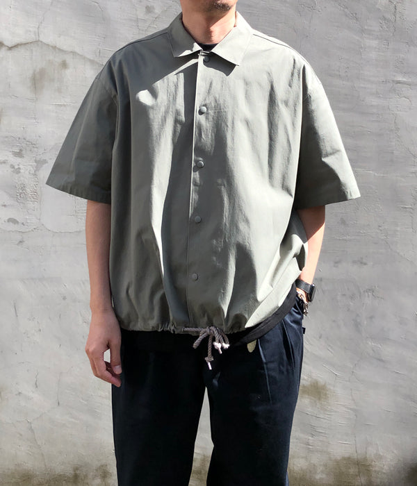 DIGAWELから、COACH S/S SHIRT JACKETが入荷しました。スナップボタン、裾のドローコードとコーチジャケットのディティールを備えた半袖シャツ。がしっとコシのあるコットンナイロン素材を使用し、背面には内側にメッシュを配したベンチレーション付き。軽く羽織っても、ドローコードを効かせても楽しめるコーディネートが広がる1着。