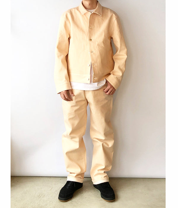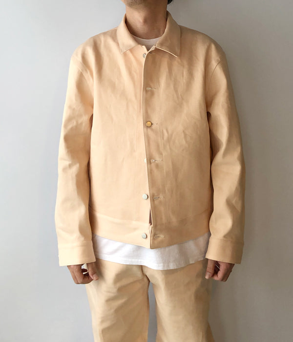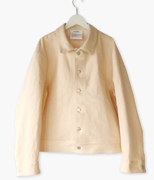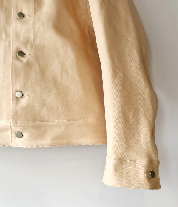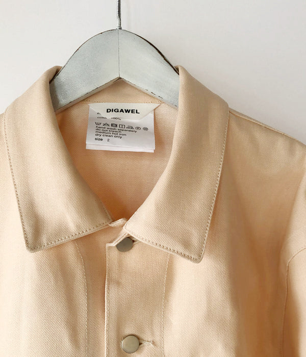 DIGAWELから、DENIM JACKET (PINK WHITE)が入荷しました。定番のデニムジャケットを淡いピンクホワイトデニムで仕立てた春らしい一着です。パッチポケットを設けないことでデニム素材によるカジュアルさを軽減しエレガントな表情に。内ポケットと、サイドシーム沿いにポケットを仕込みました。