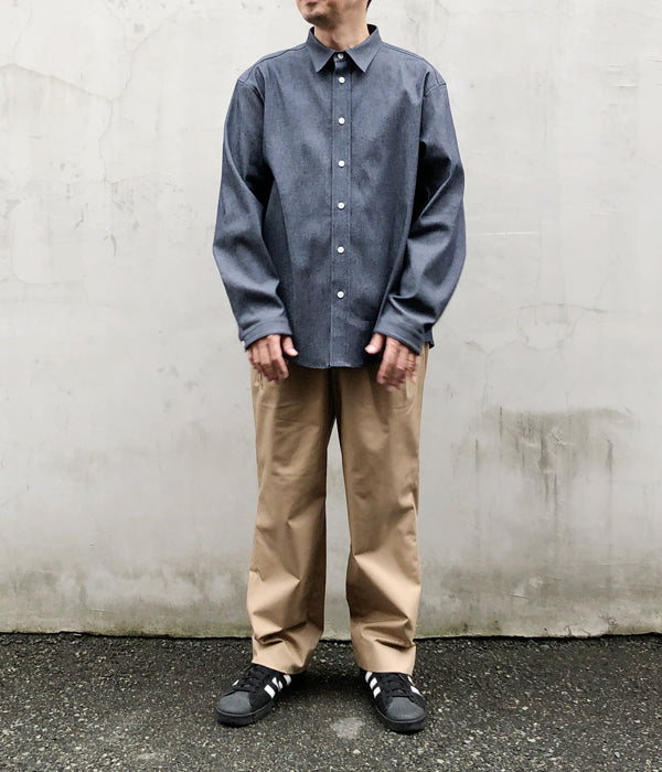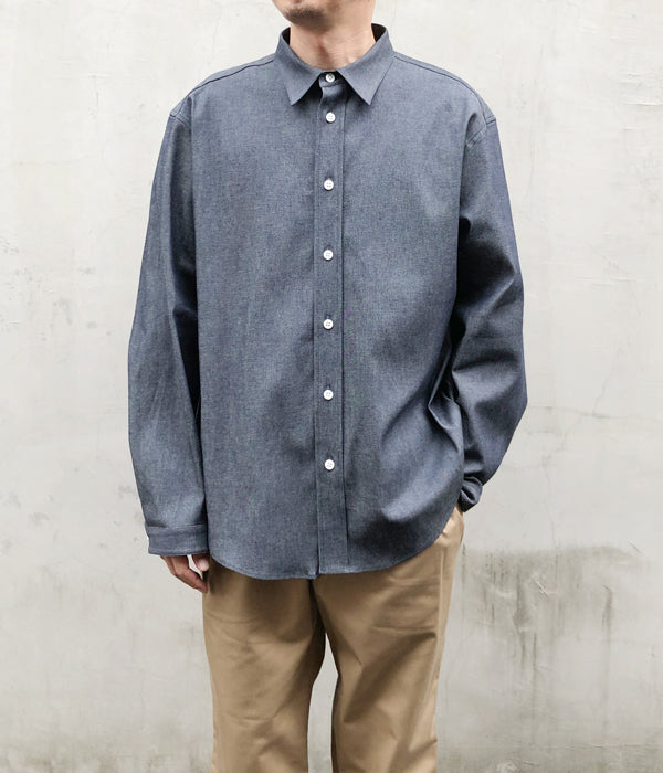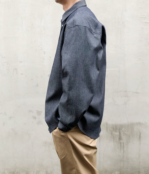 DIGAWELから、DENIM SHIRTSが入荷しました。レギュラーカラーの前開き7つボタン。リジッド仕上げ。ルーズシルエットの袖、身幅にショート丈で仕上げたDIGAWELなりのデニムシャツに仕上がっています。
