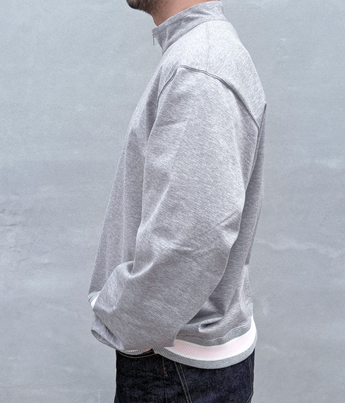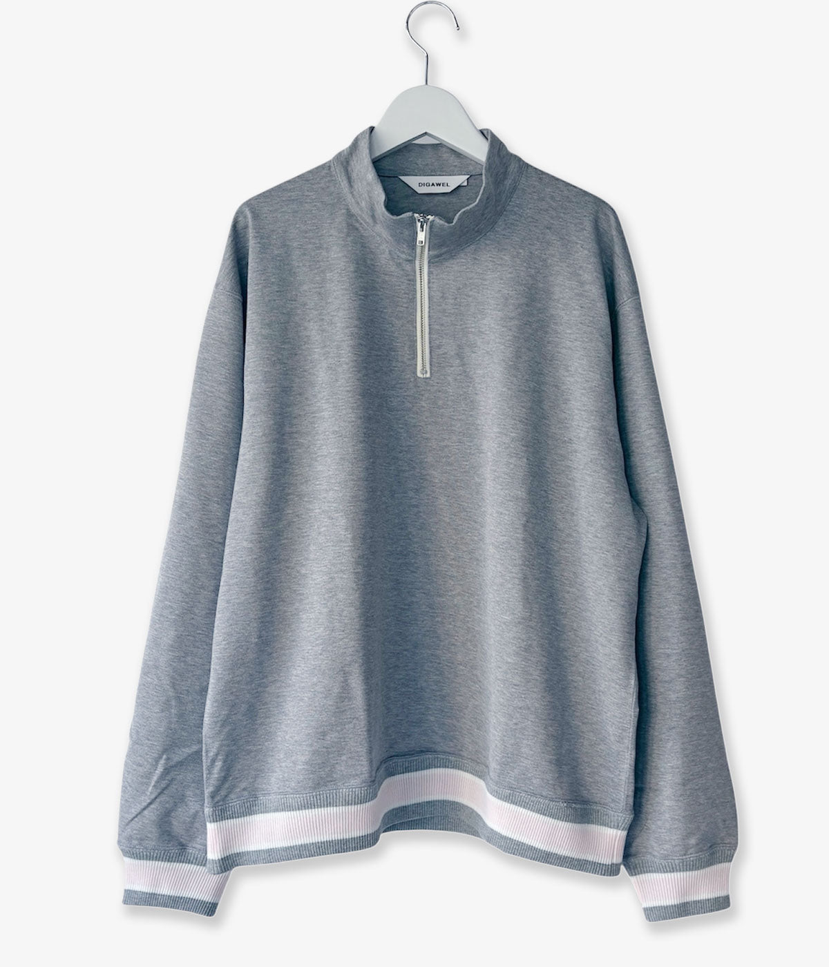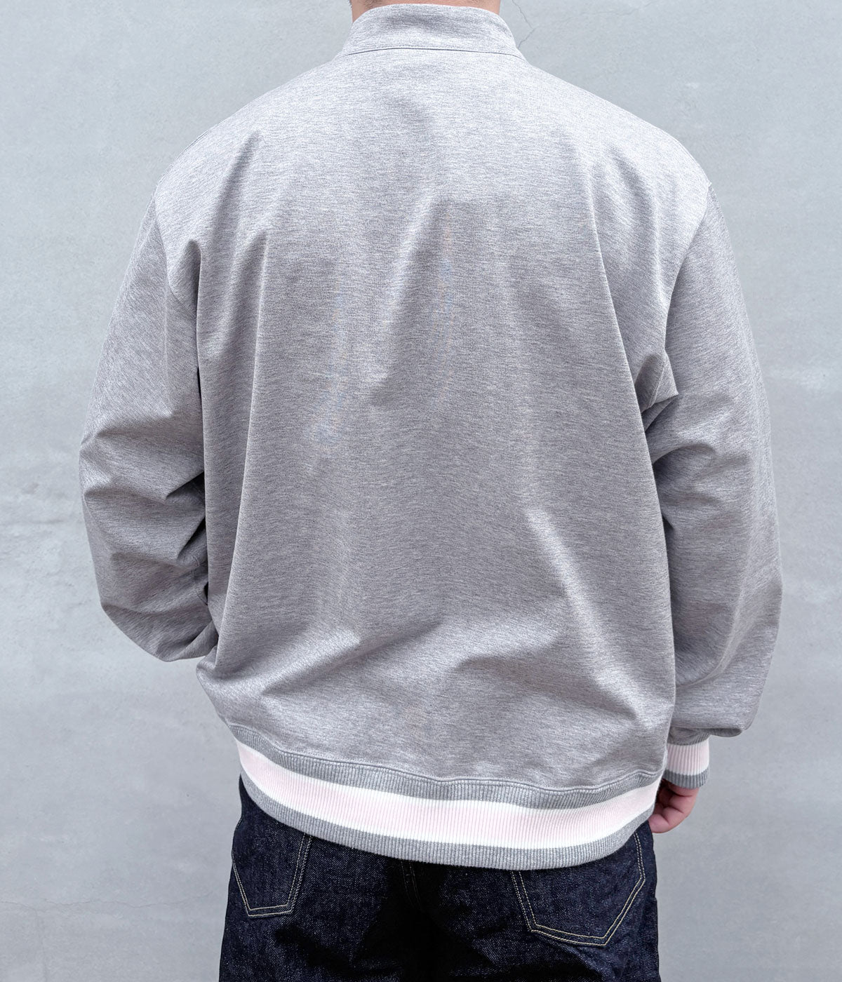 DIGAWELから、Half zip P/Oが入荷しました。裏毛ではなく、天竺製のジャージー素材で作ったハーフジッププルオーバーです。ファスナー仕立てのスタンドカラーと、リブに施したカラーラインがポイント。ロンT感覚でロングシーズン使える1着です。
