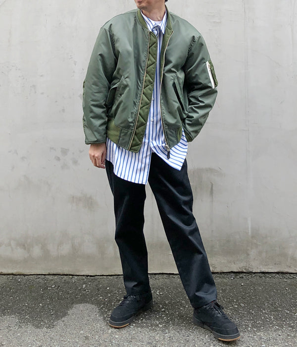 DIGAWELから、MA-1が入荷しました。袖、シガレットポケットはコンビカラー、パッカリング仕上げ。身幅はゆったりで着丈短め。中綿を装備したジャケットです。