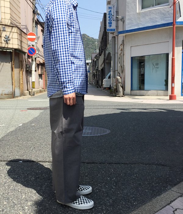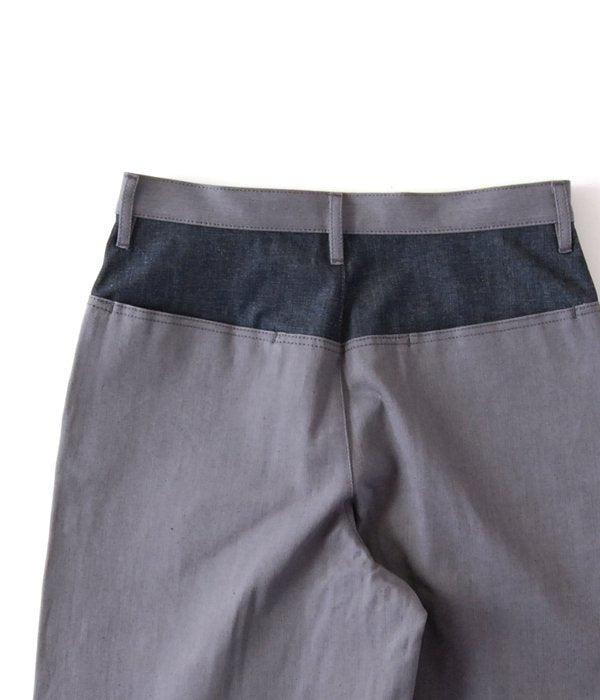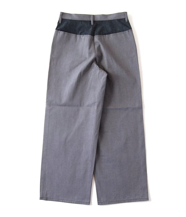 バックヨークのカラーをボディと切り替えたデザインがユニークなデニムパンツ。DIGAWELらしいデザインにルーズシルエットがマッチする一着。