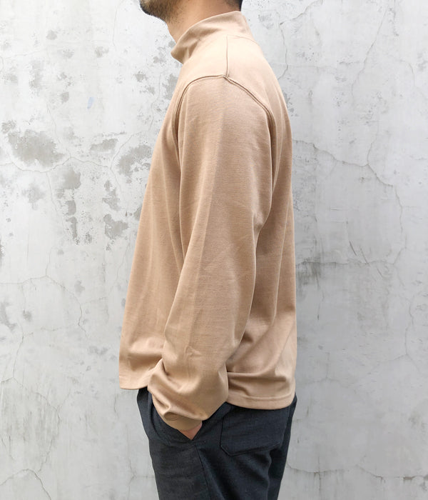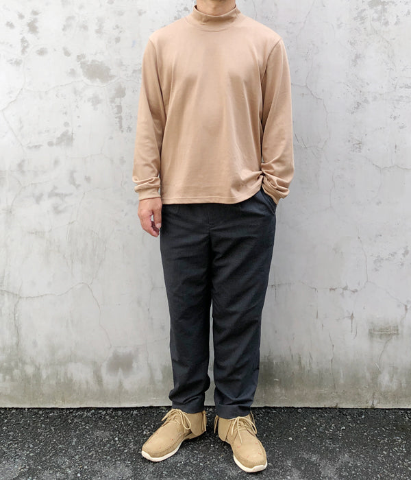 DIGAWELから、MOCKNECK L/Sが入荷しました。ぴたっとし過ぎないいい感じのサイジングのモックネックT-SHIRT。首元にも余裕があるので一枚での着用でも様になり、シャツのインナーとしても面白い、寒さが増すごとに役立つ一着。