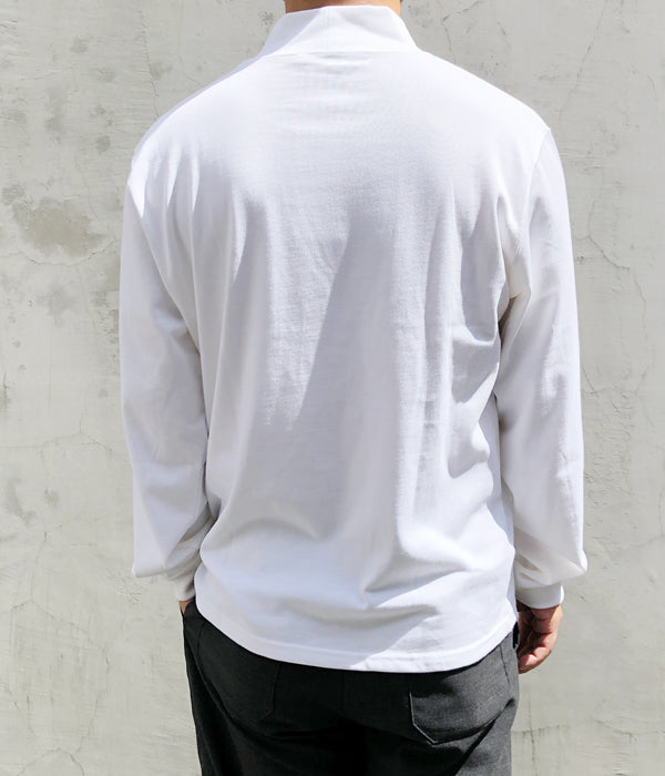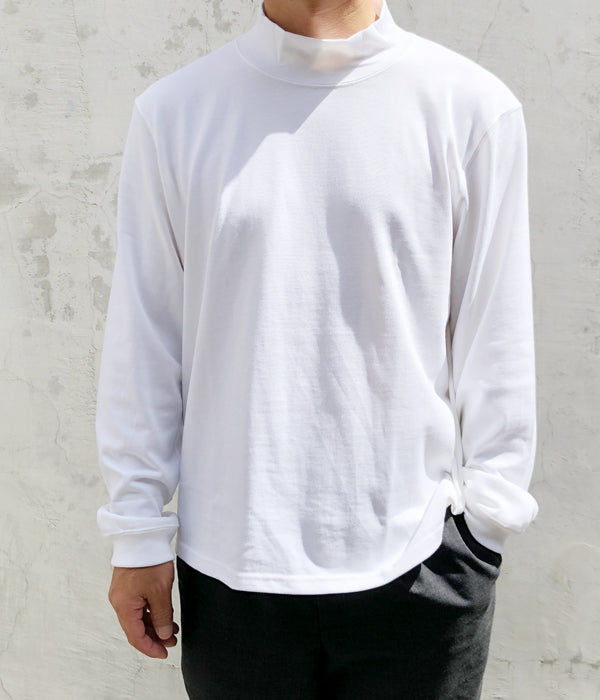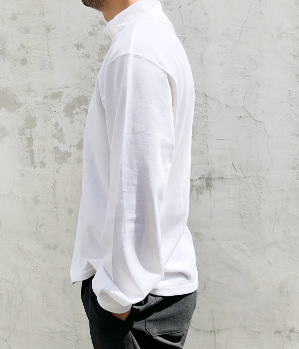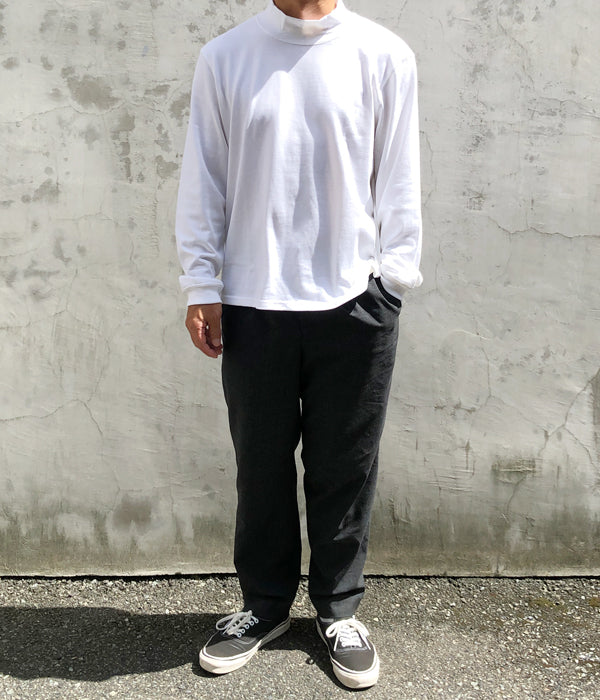 DIGAWELから、MOCKNECK L/Sが入荷しました。ぴたっとし過ぎないいい感じのサイジングのモックネックT-SHIRT。首元にも余裕があるので一枚での着用でも様になり、シャツのインナーとしても面白い、寒さが増すごとに役立つ一着。