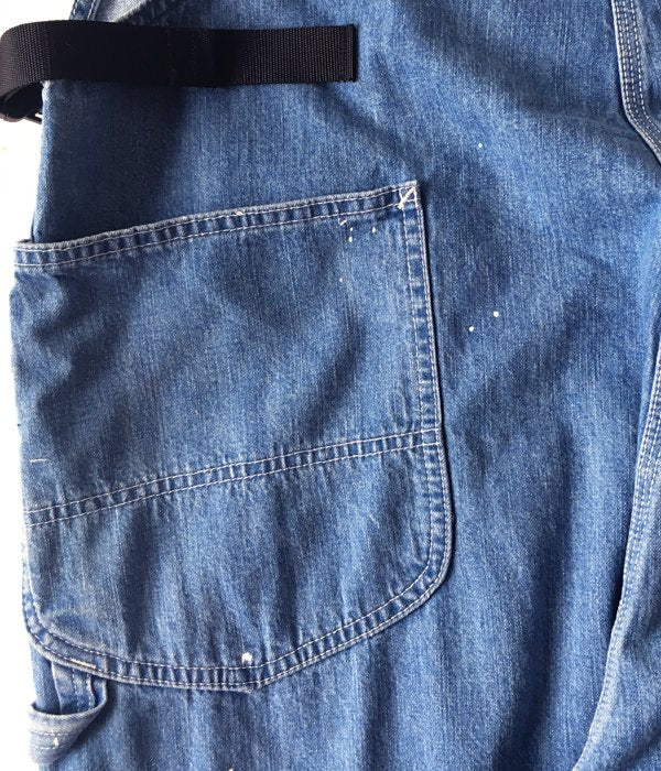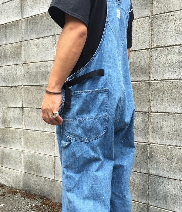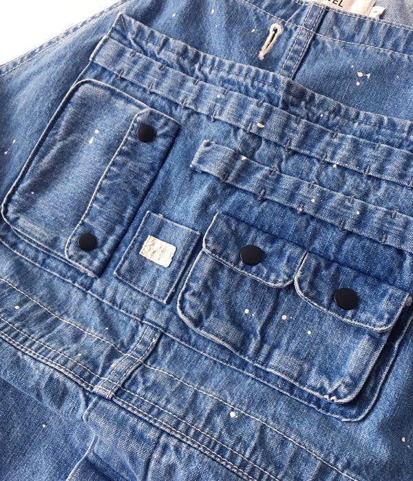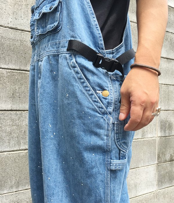 2019AWシーズンの注目ライン"DIGAWEL x LEE"より、コットンデニム素材のオーバーオールです。DIGAWELらしい個性的な胸当てのポケットのデザインと、控えめなペンキ加工がブルーデニムに映える一着。サイドアジャスターでウェストの絞りを調整できます。