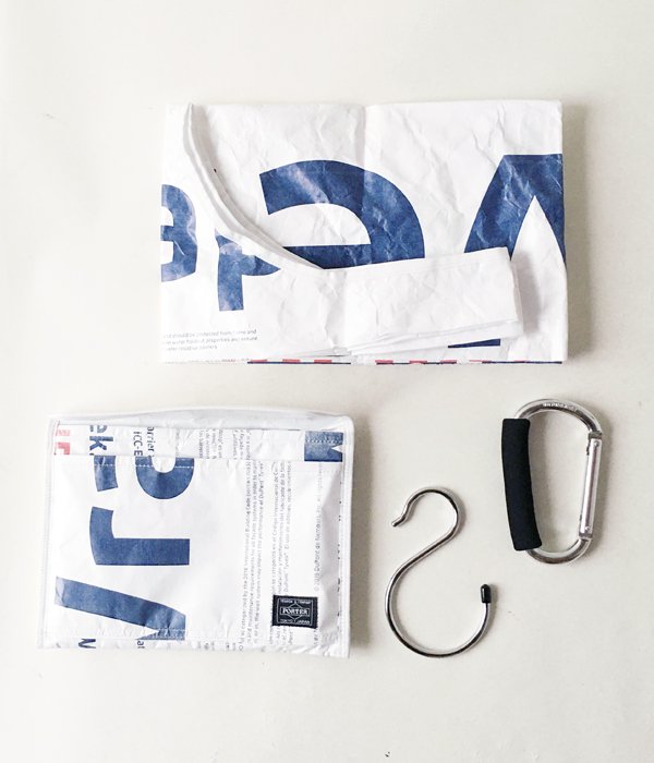 DIGAWELから、Rawbag②が入荷しました。今シーズンのPORTERとのコラボアイテム。ホームラップ素材を使用した防水性に優れたビビッドなデザインのバッグ。大きなS字フックと特大カラビナが付属し、持ち手をまとめたり、引っ掛けたりと役に立ちます。付属のポーチも仕切りが多く独立して使用可能な作り。