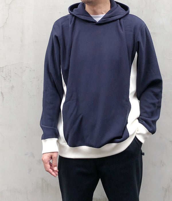 DIGAWELから、REVERSE WEAVE HOODIEが入荷しました。なめらかな肌触りと繊維の光沢が特長の超長綿を使用した裏毛スウェット。サイドのリバースウィーブ型パターンにカラー切り替えを施したアクセントのあるデザイン。
