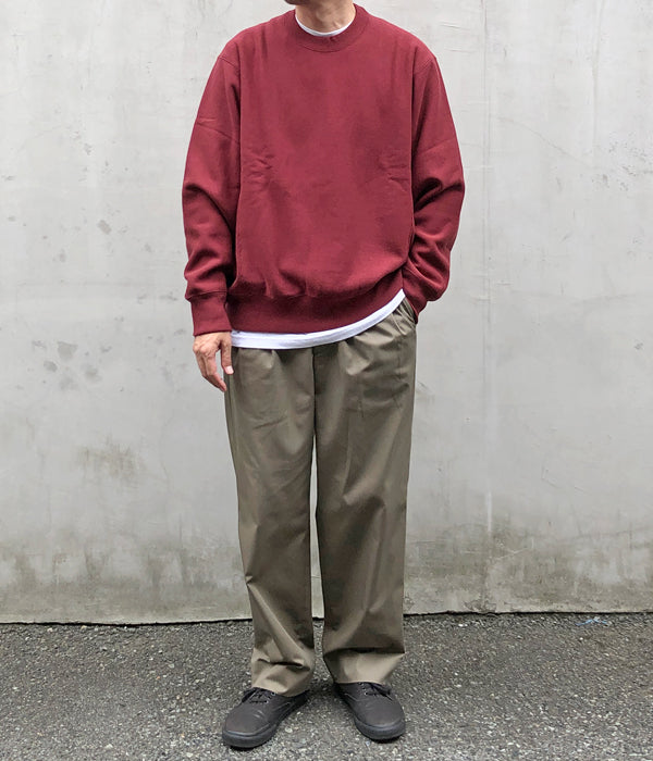 DIGAWELから、REVERSE WEAVE SWEATSHIRTが入荷しました。厚手な裏パイルコットン生地を使用したリバースウィーブ仕立てのCNスウェット。着込むごとに味わいの増しそうなコシのある素材感ですが、しっとりとした適度な伸縮性もあり着心地も抜群です。裾リブをきかせたゆったりとしたシルエットに、袖口のD印のワッペンがワンポイント。