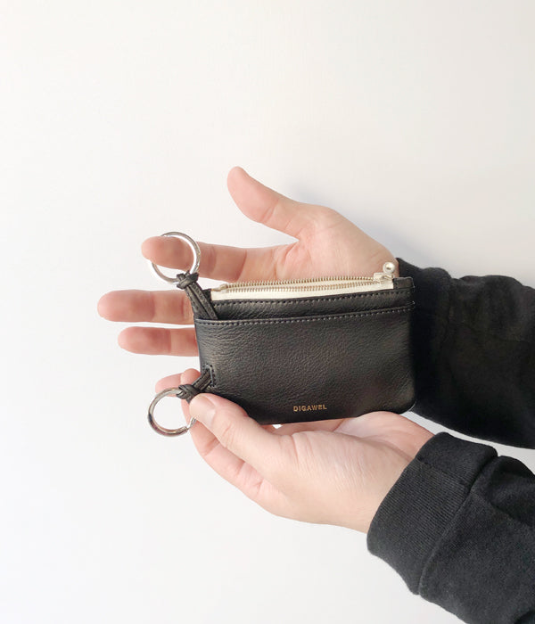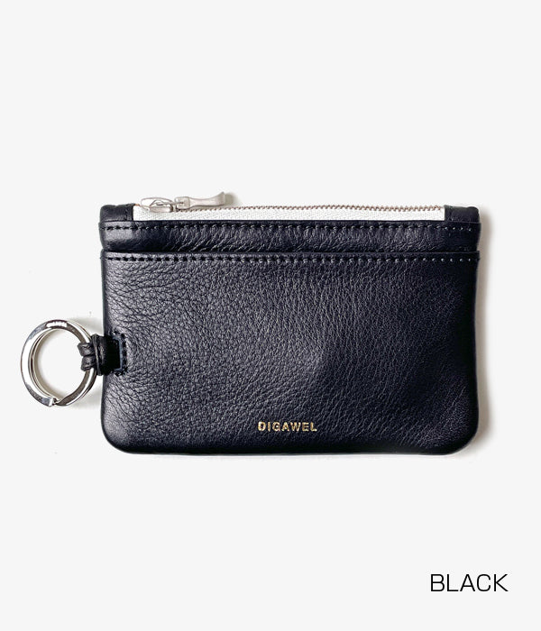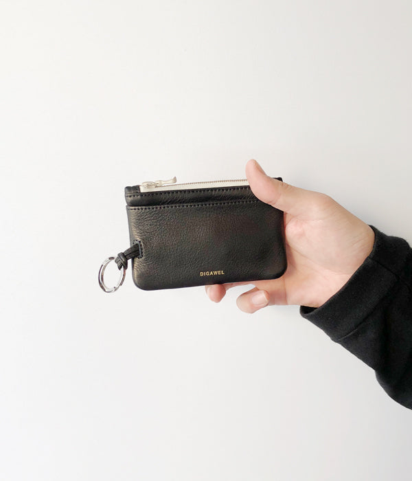 DIGAWELから、RING CARD CASEが入荷しました。レザーアイテムの新作として、ダブルリングが特徴のカードケースが登場。メインルームをあわせ3か所ものポケットを配し、カード以外にもユーザーのライフスタイルに応じた収納が可能な使える小型ウォレットに仕上がっています。DIGAWELの刻印入りリングと、riri製のジップによる装飾がシンプルに際立つデザイン。