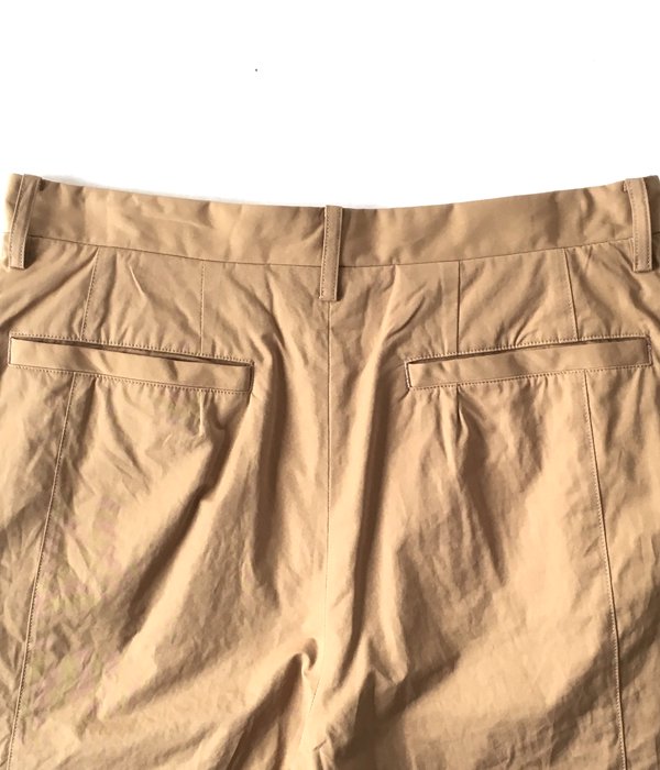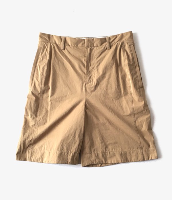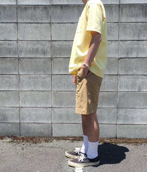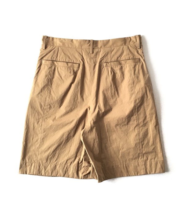 ややワイドなシルエットのひざ丈ショーツ。コットンナイロン素材のシャリっとした風合いが夏場に心地良いです。サイド2か所のステッチが立体的なフォルムを作り出してくれます。