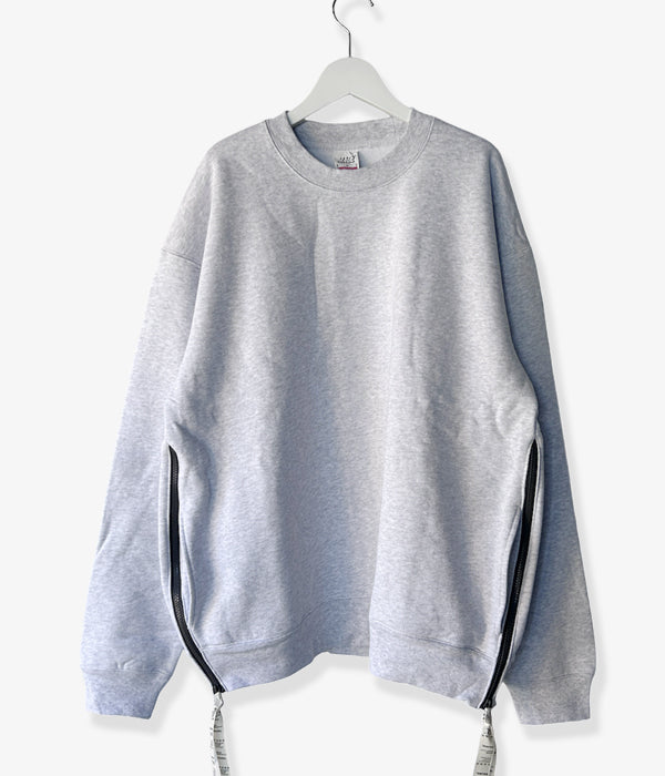 DIGAWELから、Sweatshirt(ready-made) Made Blanksが入荷しました。近年お馴染みとなった既製ボディに改造を加えたスウェットシリーズの新作は、Made Blanksの裏起毛ボディを使用したクルーネック。両脇にファスナーをあしらい、引手に品質表示をプリントしたリボンをアクセントに。海外規格ならではの大きなサイジングの1着。
