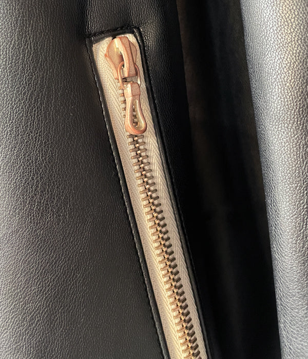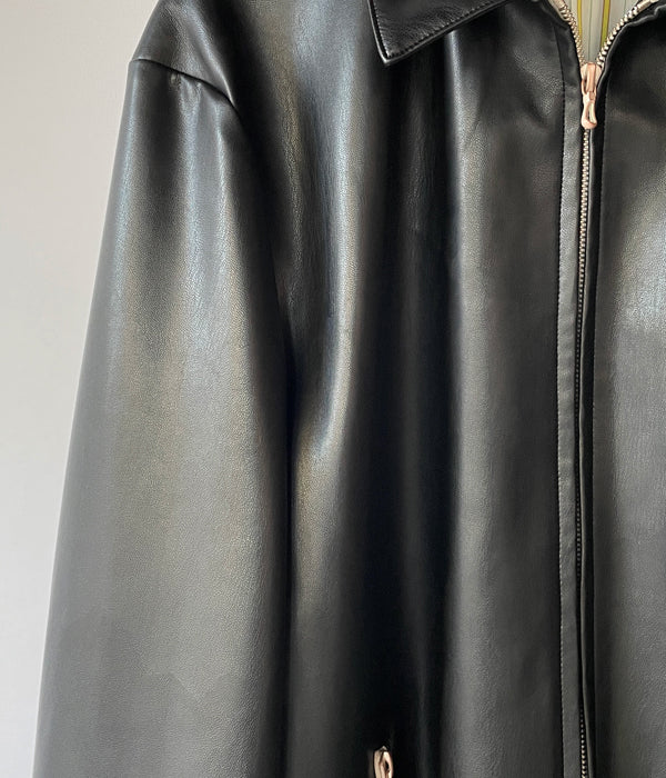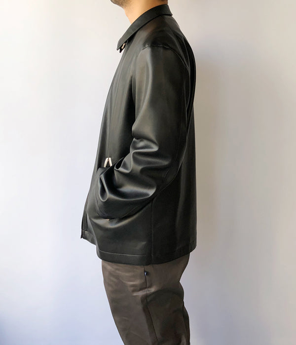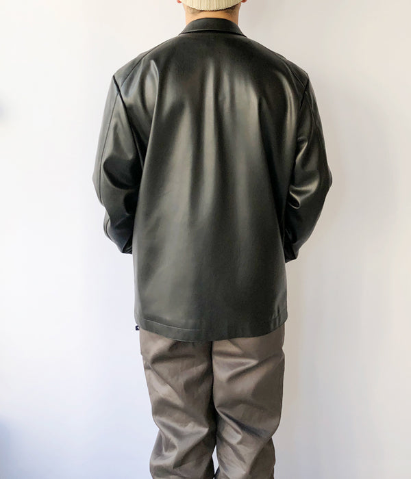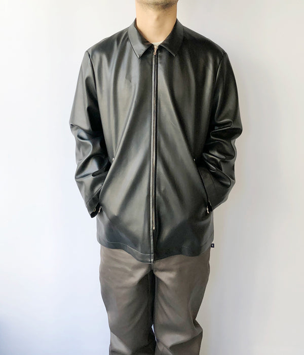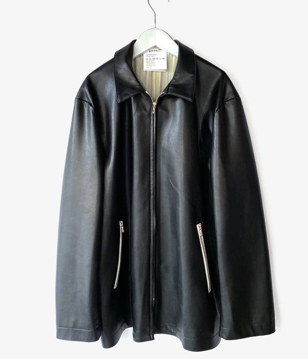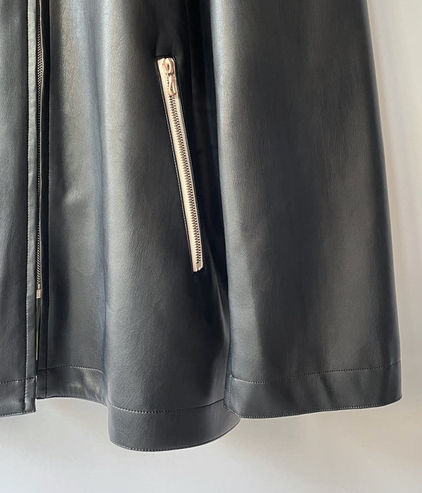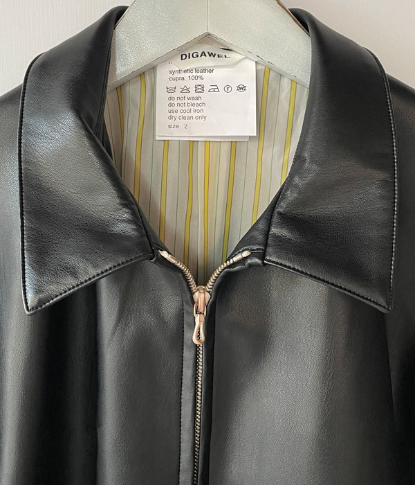 DIGAWELから、SYNTHETIC LEATHER HALF COATが入荷しました。シンセティックレザー製のハーフ丈コート。riri製のジップ開閉式フロントデザインに、サイドポケットにも同ジップで飾り付け。人工皮革ならではのしなやかさが、ややゆったりとしたシルエットにマッチしています。お手入れもイージーな優れたレザーJKT。