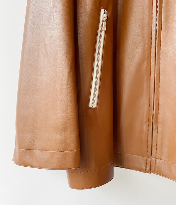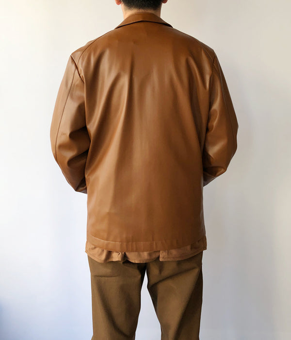 DIGAWELから、SYNTHETIC LEATHER HALF COATが入荷しました。シンセティックレザー製のハーフ丈コート。riri製のジップ開閉式フロントデザインに、サイドポケットにも同ジップで飾り付け。人工皮革ならではのしなやかさが、ややゆったりとしたシルエットにマッチしています。お手入れもイージーな優れたレザーJKT。
