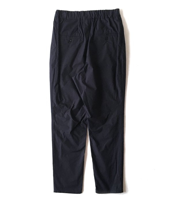 インシームに2本針のステッチを走らせたパッカリング感のあるイージーパンツ。ウェストにはゴムとドローストリングを仕込んだ、緩やかなテーパードが美しいシルエットの一着。