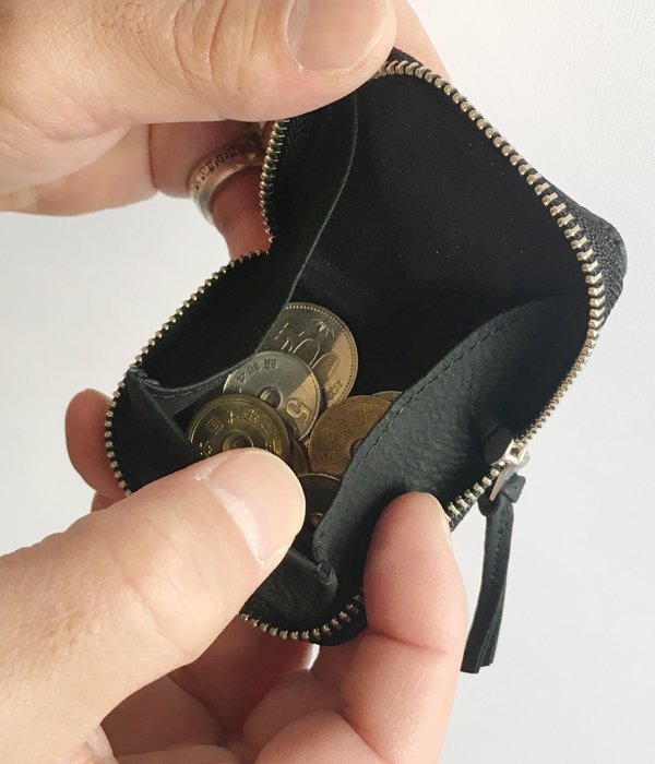 ERA.から、BUBBLE CALF ROUND VERY MINI WALLETが入荷しました。フレンチカーフの代名詞的存在として知られる、フランス・デュプイ社のカーフレザーを使用したBOX型小銭入れ。手のひらよりも小さい極小サイズに仕上げながらも、緻密な計算によるパターン、構造によりしっかり小銭を収納可能な作り。era.の刻印入りZIPは走りも抜群で使い勝手良しな仕上がり。