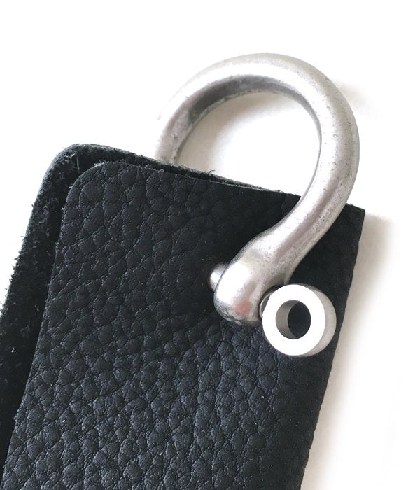 ERA.から、BUBBLE CALF SHACKLE KEY COVERが入荷しました。デュプイ社のカーフレザーを使用したレザーカバーに、取り外し可能なシャックルを取り付けたキーケース。4個前後の鍵を収納でき、ポケットに収まるサイズ感が使い勝手良いです。