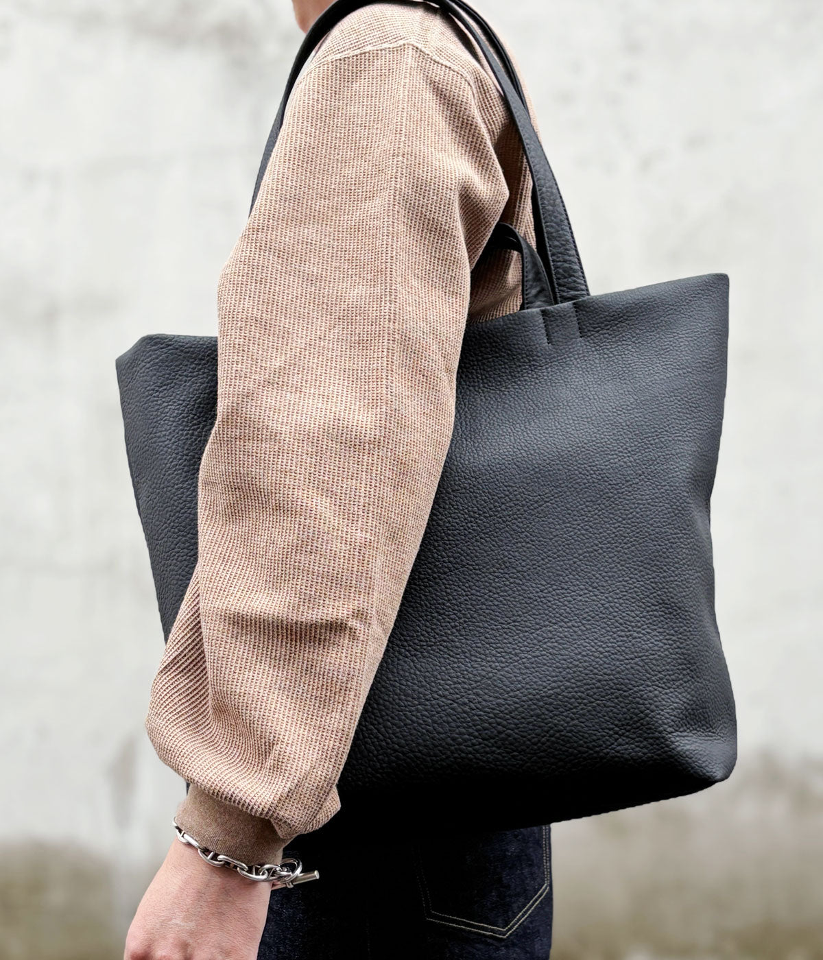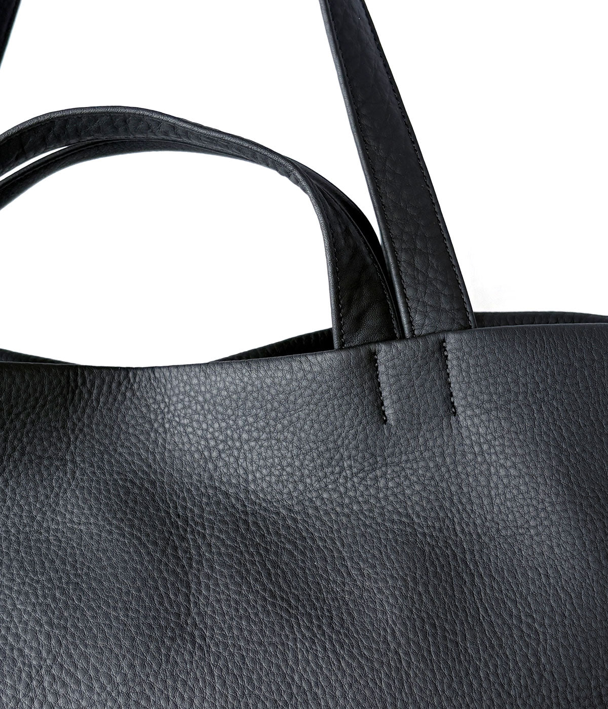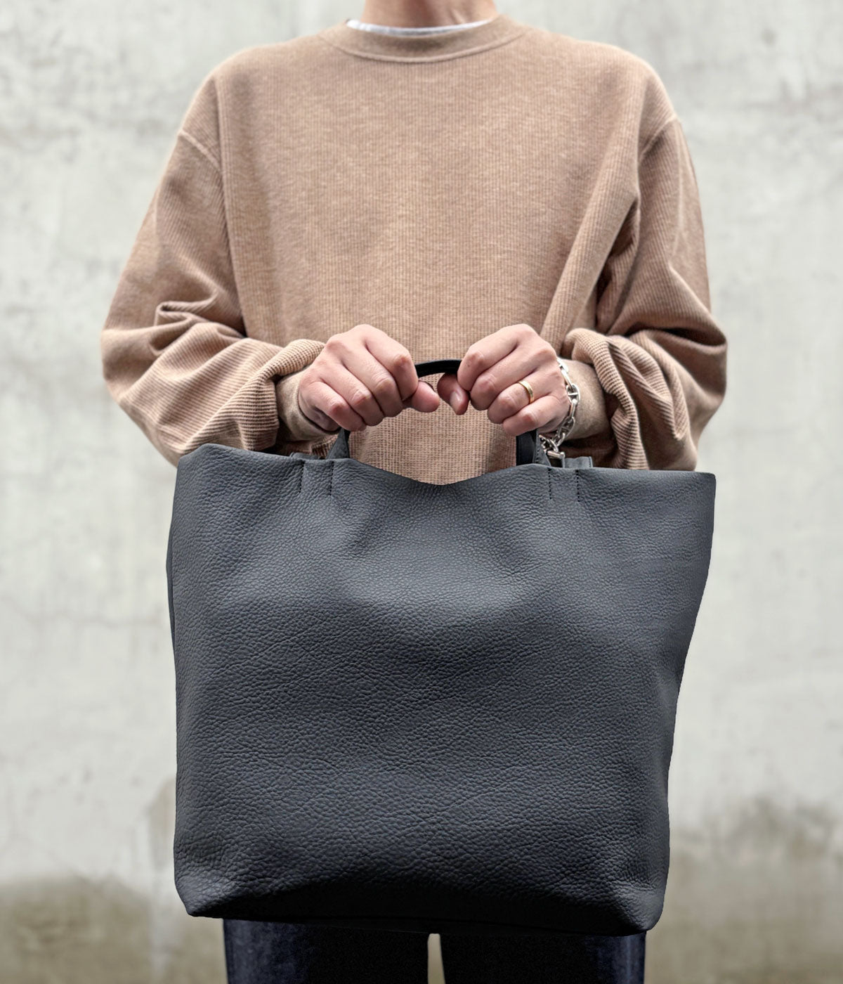 ERA.から、EO SHRINK MERCH TOTE BAGが入荷しました。ライブ会場の物販で売っているマーチャンダイズグッズのトートバッグから着想を得たサイズ感をもとに、ERA.が厳選したシュリンクレザーで仕上げた耐久性にも優れたグッドサイズのトートバッグ。肩掛けと手持ちのハンドルによる2WAY、内部の小分けポケットも充実したERA.ならではの使い勝手の良い設計。ナイロン製とは違った上品な趣を感じるひと品。