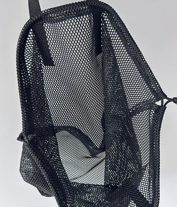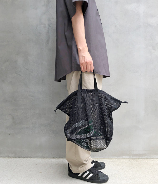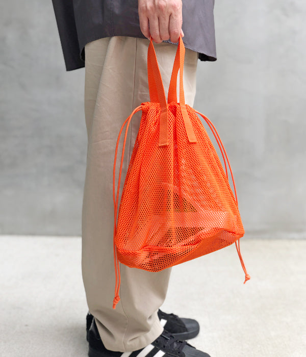 ERA.から、MESH HELMET BAGが入荷しました。イギリス空軍のヘルメットバッグをモチーフに、柔らかく厚みのあるメッシュ素材で仕立てたユニークなバッグ。口をコードで絞れる巾着仕様なのでボリューム感を調整でき使いやすいです。透け感があって夏っぽいひと品。