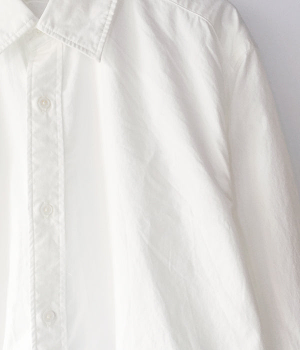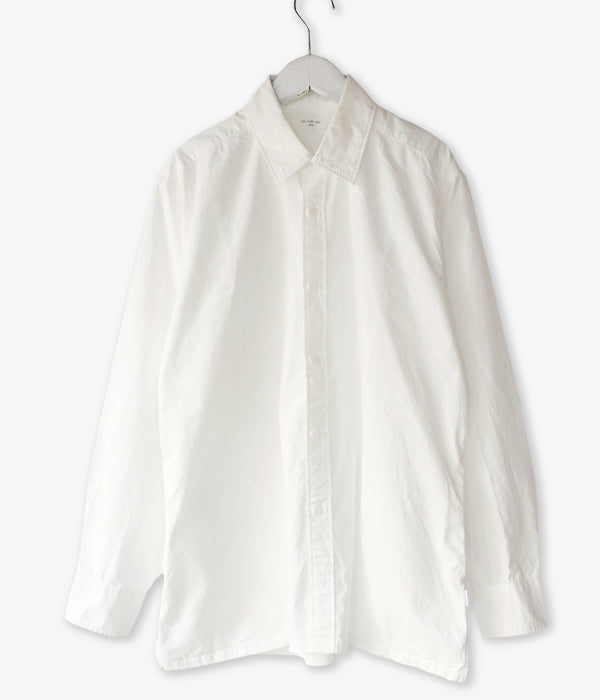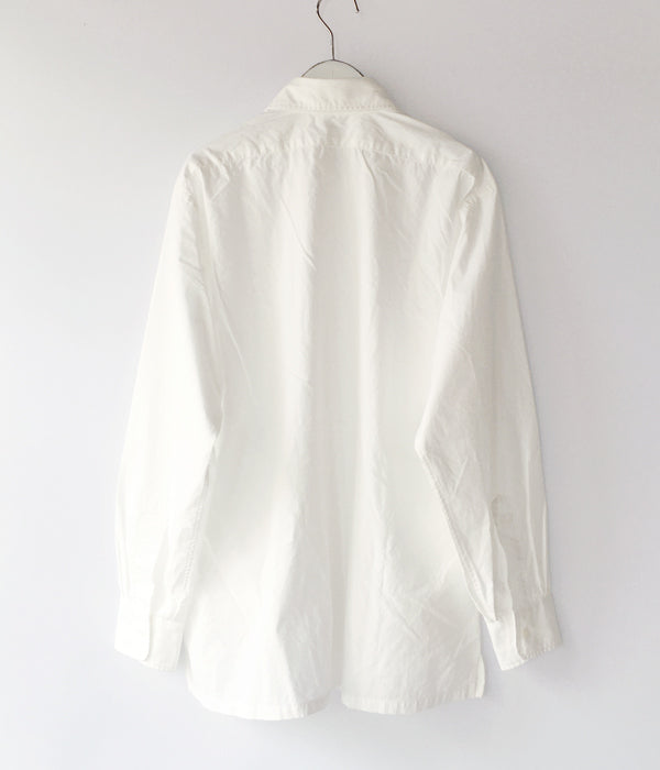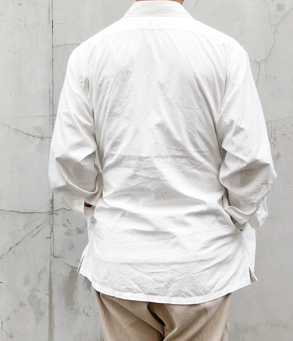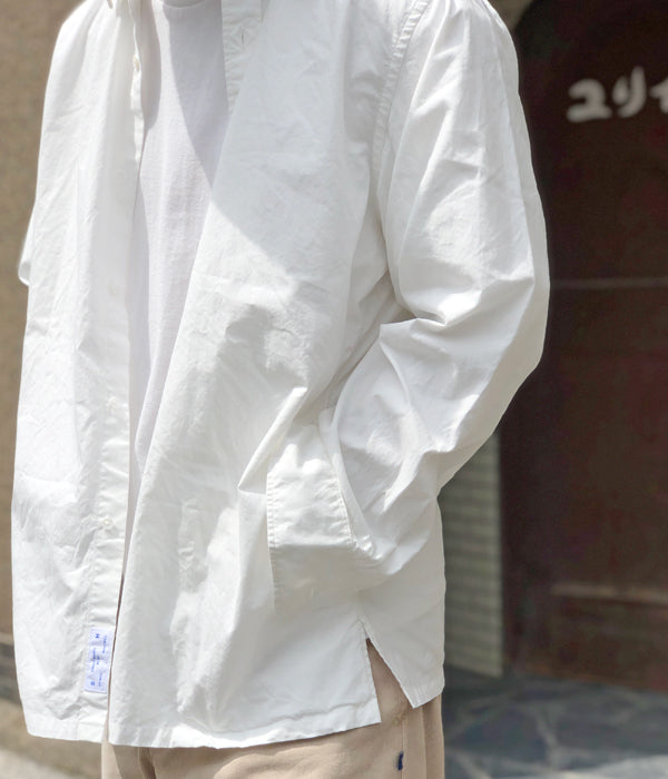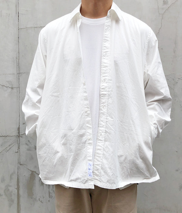 ERA.から、SH-CHRV-001が入荷しました。関隼平氏が手掛けるシャツブランド SHとのコラボアイテム。Charvet(シャルベ)の古着をイメージソースにややワイドな襟、ゆったりとした身幅、スクエアカットの裾に仕上げた珠玉の逸品。オリジナルのオックス生地を使用しサイドにポケットを設けてあり、コーチJKTみたいに着ても面白いです。