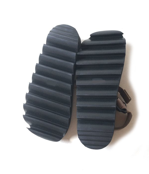 ERA.から、TAPE BAREFOOT SANDALが入荷しました。光沢のあるナイロンテープをストラップに用いたワラーチサンダル。シャークソールを採用し安定感がありデザイン性も高く、かかと部分のみミッドソールを厚くし履き心地は良好です。