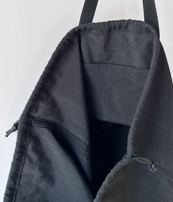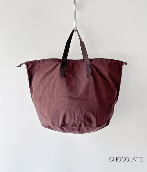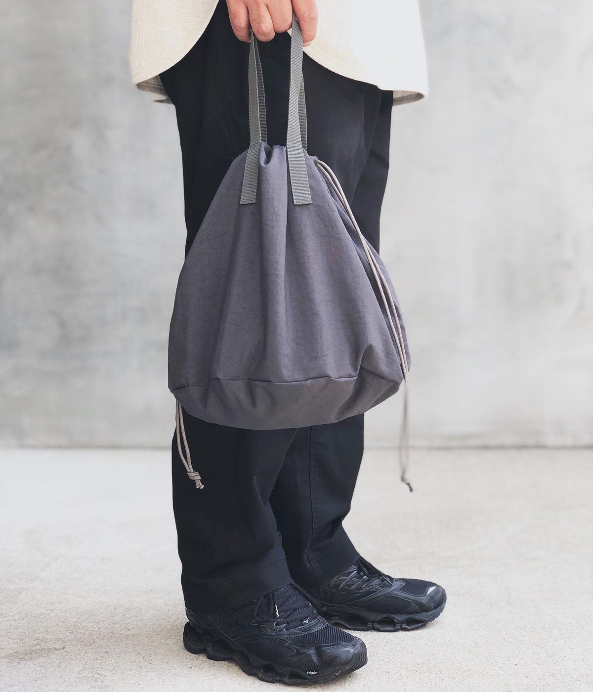ERA.から、TAS HELMET BAGが入荷しました。イギリス空軍のヘルメットバッグをモチーフに、コットンのような肌触りの撥水性タッサーナイロンで仕立てたユニークなバッグ。口をコードで絞れる巾着仕様なのでボリューム感を調整でき使いやすいです。バッグ本体を内ポケットに収納可能なパッカブルデザイン。