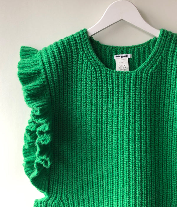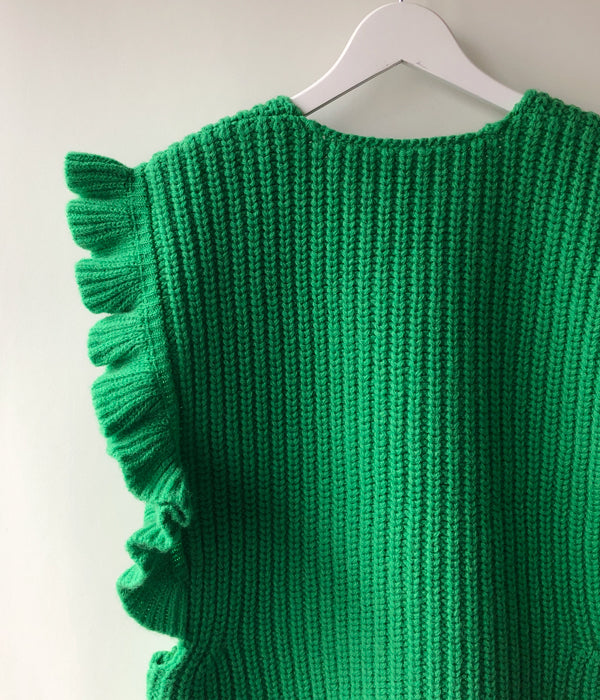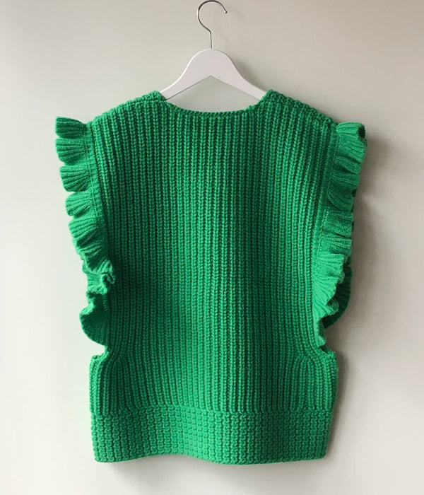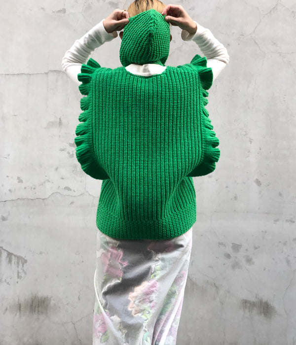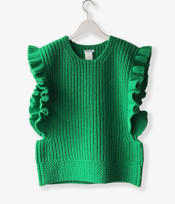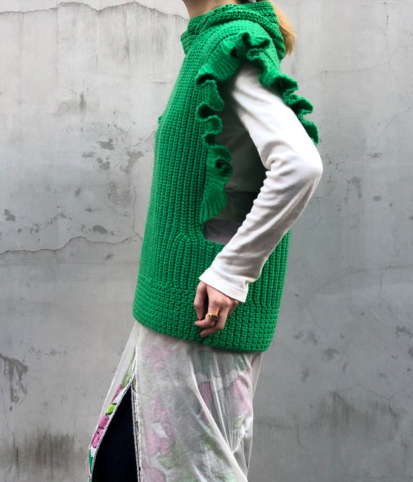 FUMIKA_UCHIDA/3G Mix Shetland/OVER FRILL VEST(SPINACH/size36)
