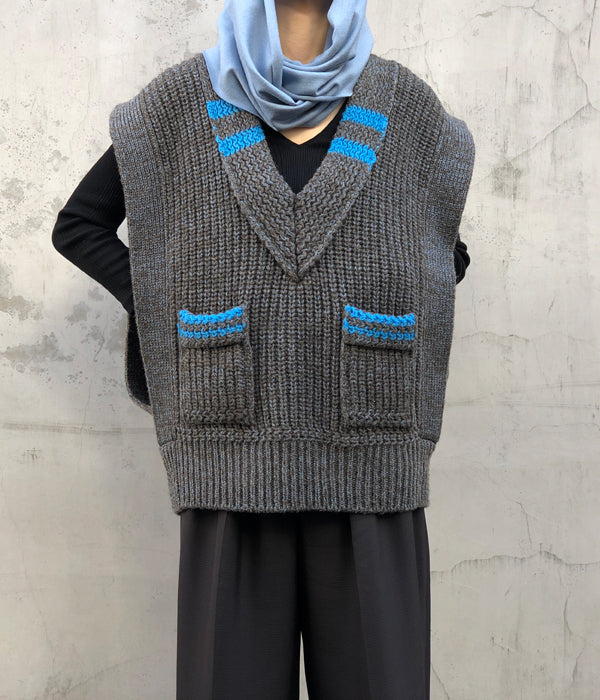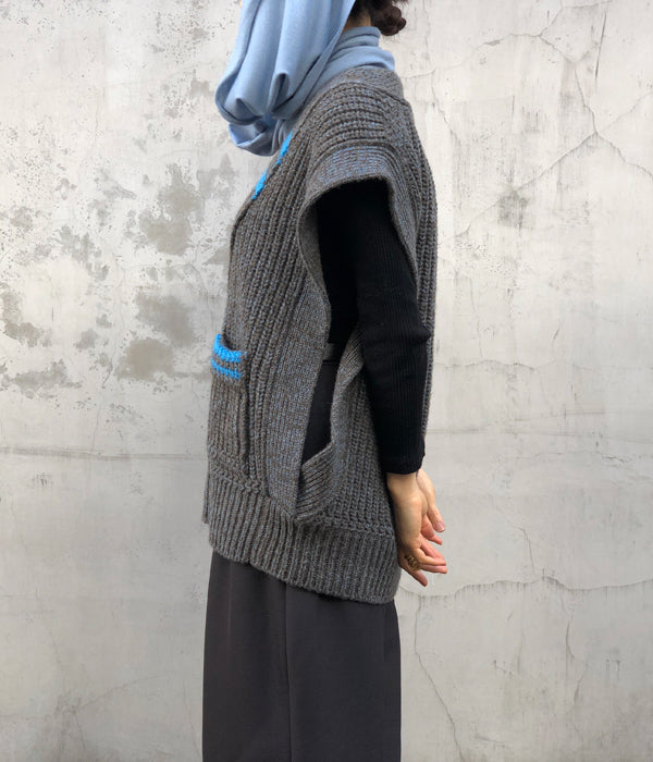 FUMIKA_UCHIDA/3G Mix Shetland/OVER VEST(CHLKHAKI/GUM)